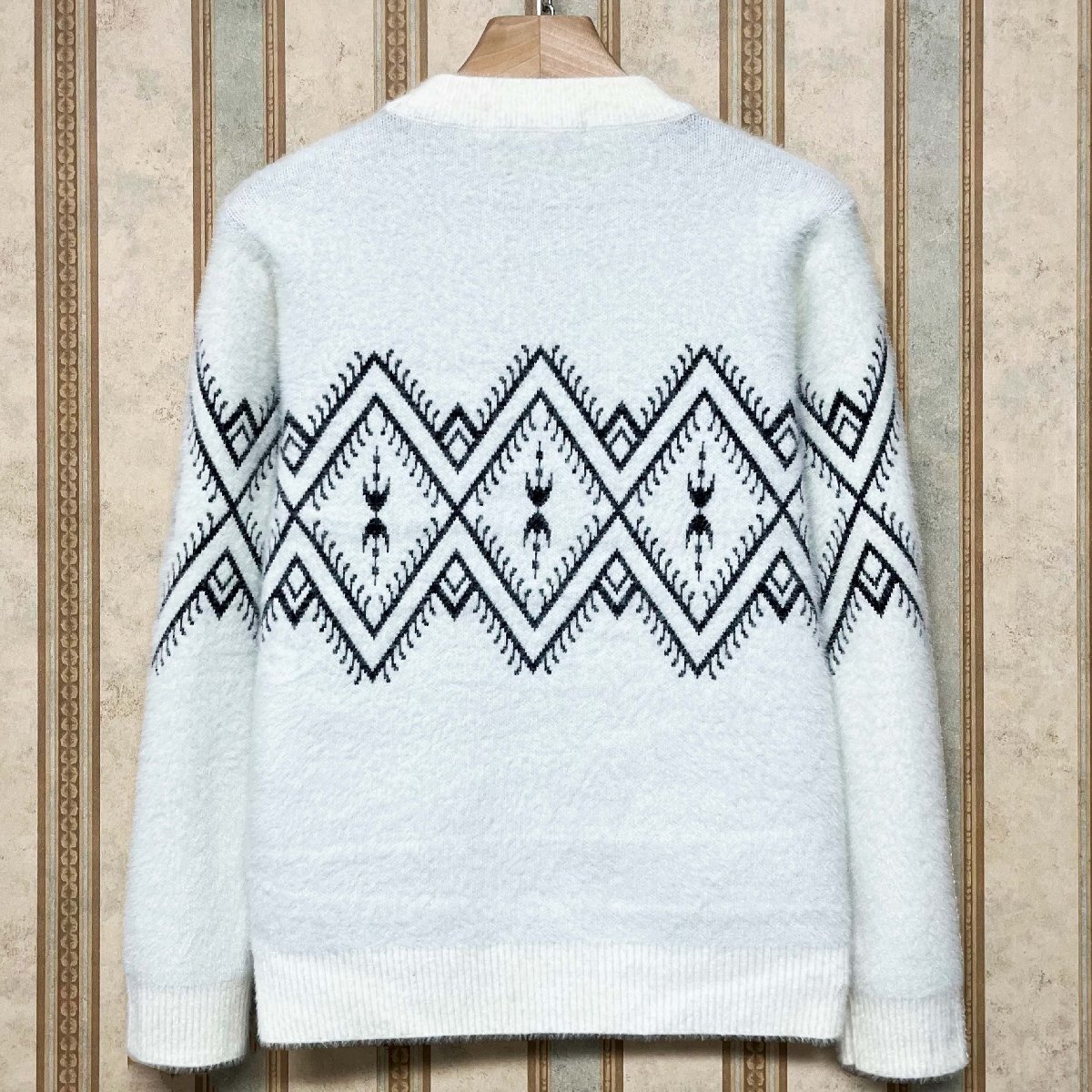 高級 定価5万 FRANKLIN MUSK・アメリカ・ニューヨーク発 上質カシミヤ混 柔らかい 光沢 保温 ニット アーガイル柄 トレーナー カジュアル 秋冬 サイズ4