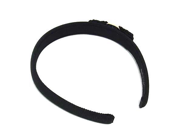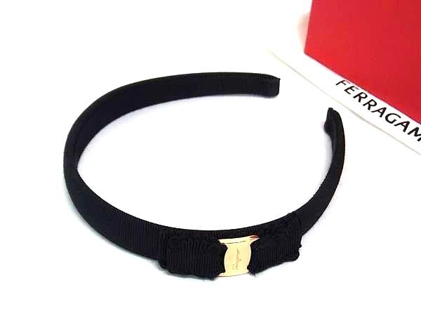 1円 ■極美品■ Salvatore Ferragamo フェラガモ ヴァラ リボン キャンバス カチューシャ ヘアアクセサリー レディース ブラック系 FN9559