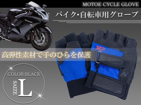 ハーフフィンガーグローブ フィンガーレスグローブ ハーフグローブ Lサイズ ブルー 青 指切り 指なし 手袋 トレーニンググローブ バイク