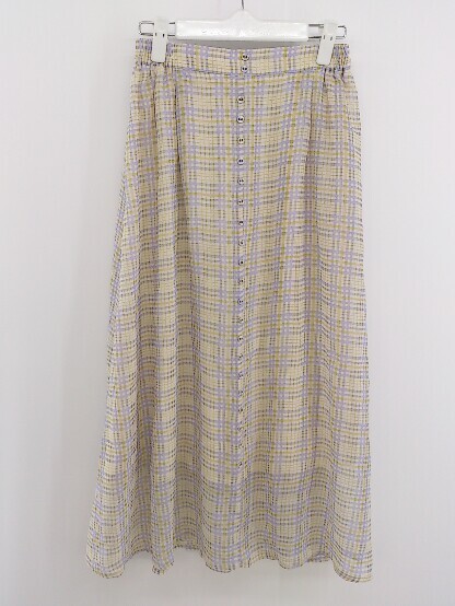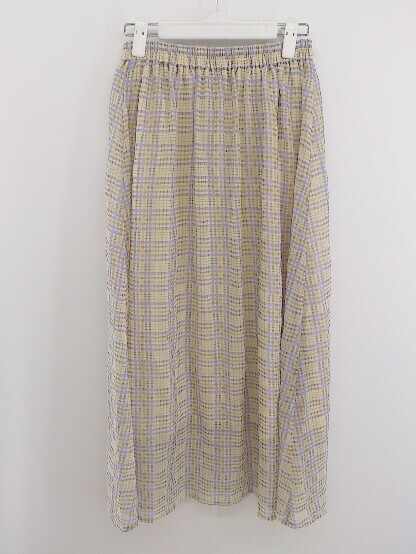 ◇ Crisp クリスプ ウエストゴム チェック ロング フレア スカート サイズF ベージュ系 パープル グリーン レディース P