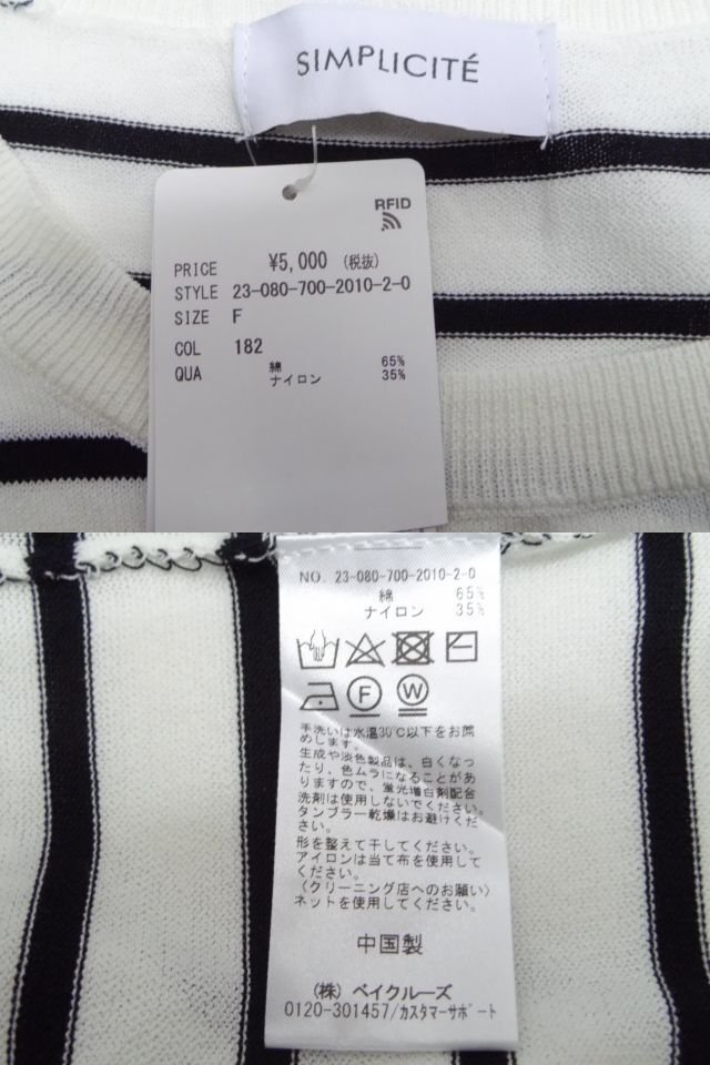 SIMPLICITE★サンプリシテ/ノースリーブニット/ボーダー柄/ホワイト/ブラック/定価¥5500/Fサイズ【新品】K250827TK-08