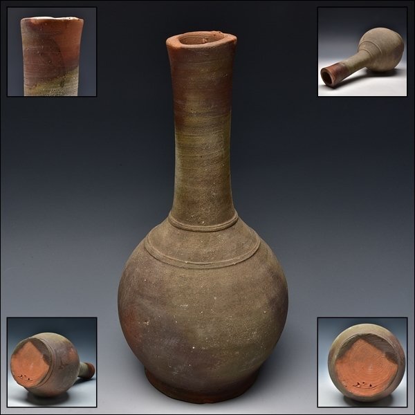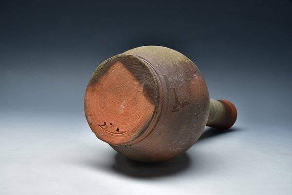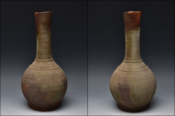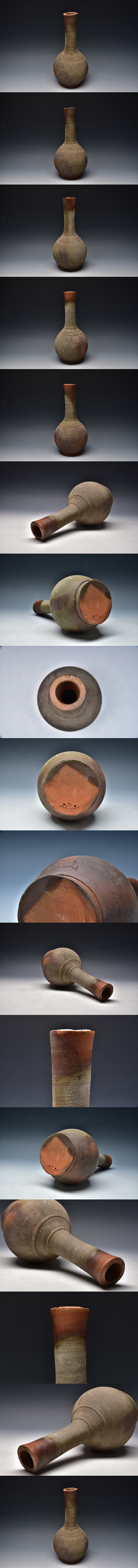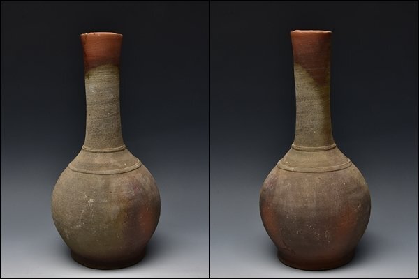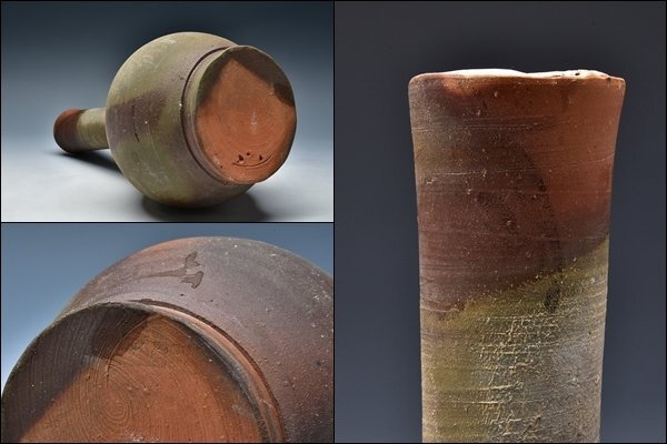 U08772 吉本正 備前 窯変 花入 花生 花器 花瓶 壺 茶道具 師 人間国宝 藤原啓
