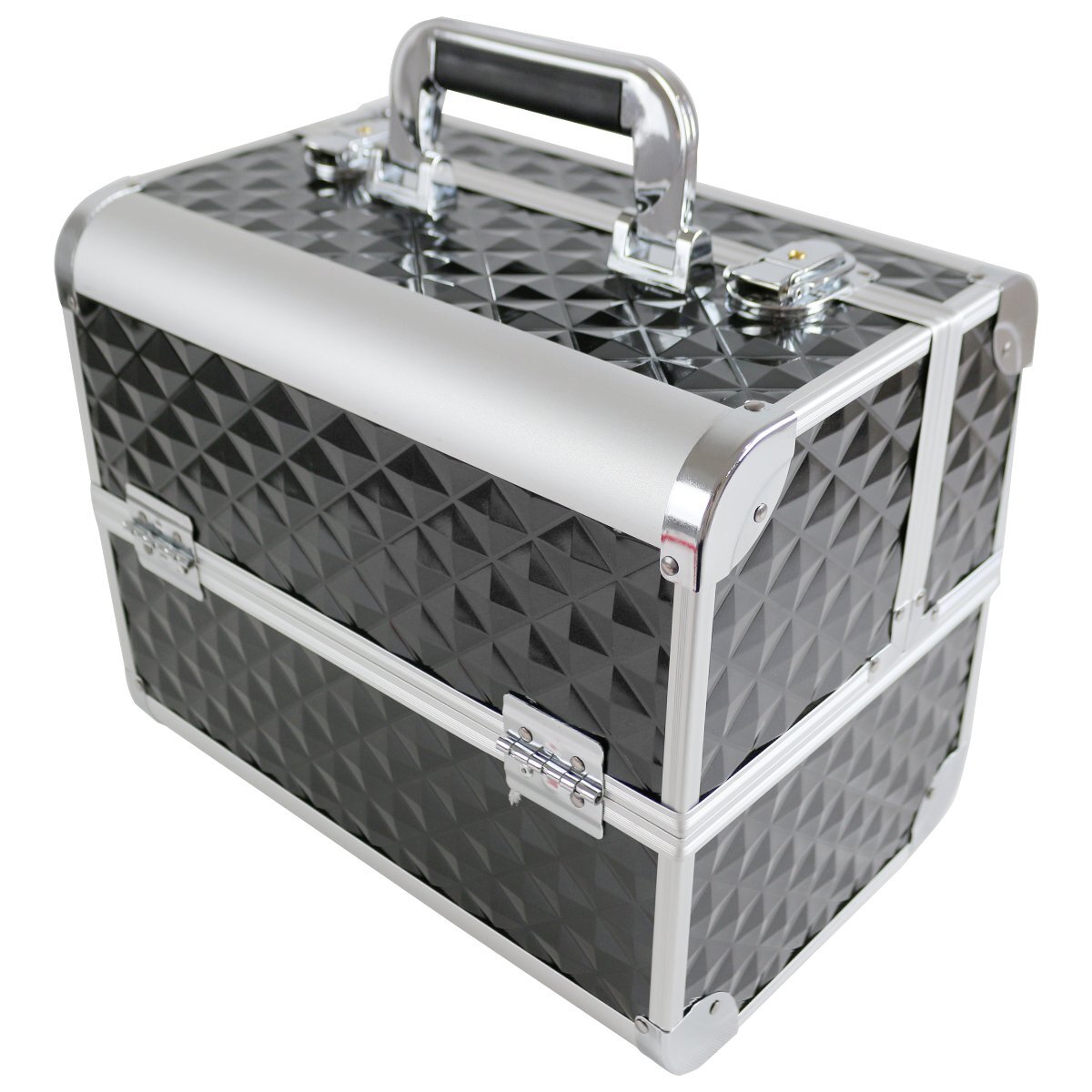 3段 アルミ合金 鍵付き ツール ボックス 両開き 工具箱 道具箱 工具 道具 収納 パーツ ケース 入れ 車載 ブラック/黒 三段
