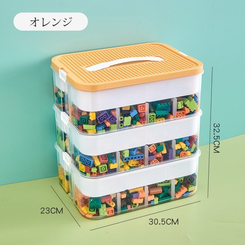 収納ボックス 3層式 おもちゃ 収納 レゴ ブロック 収納 ケース レゴ 収納ケース 仕切り キッズ お片付け ブロック 593or(オレンジ)