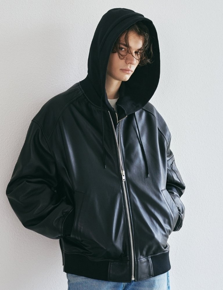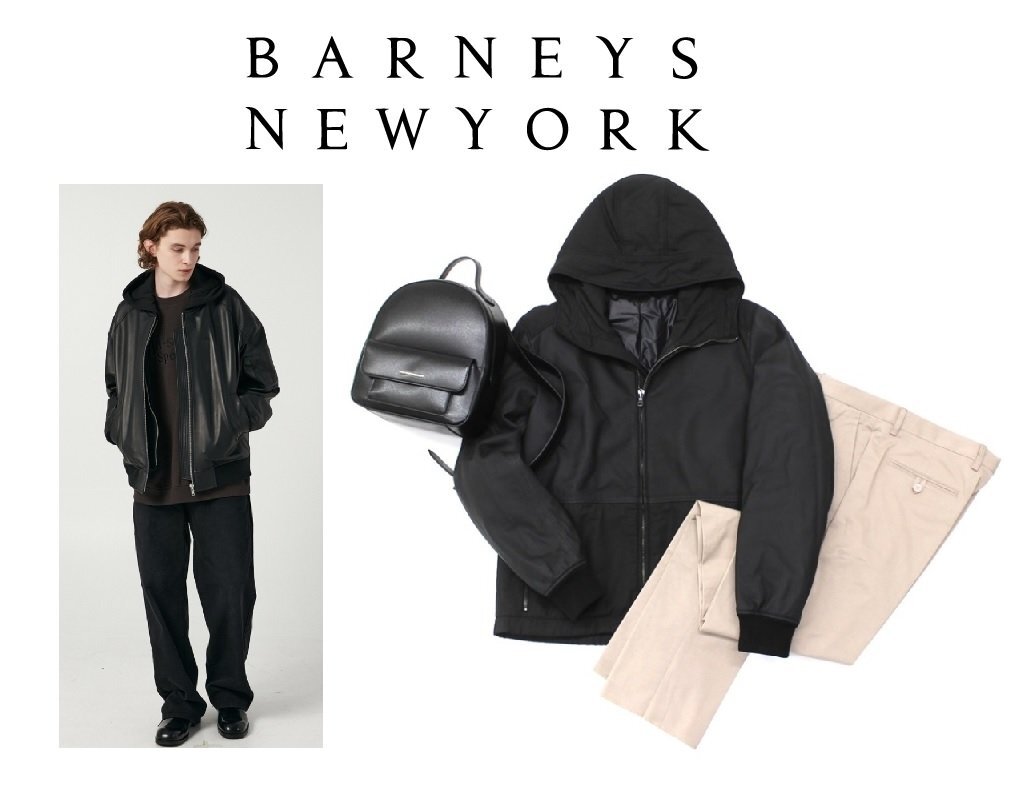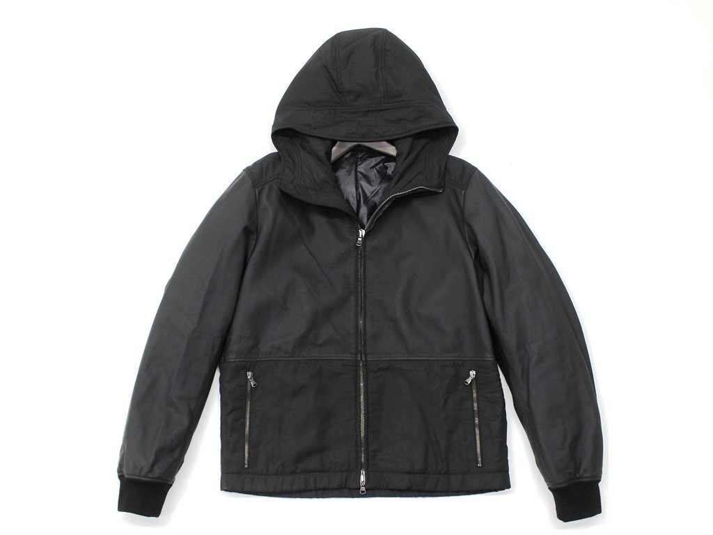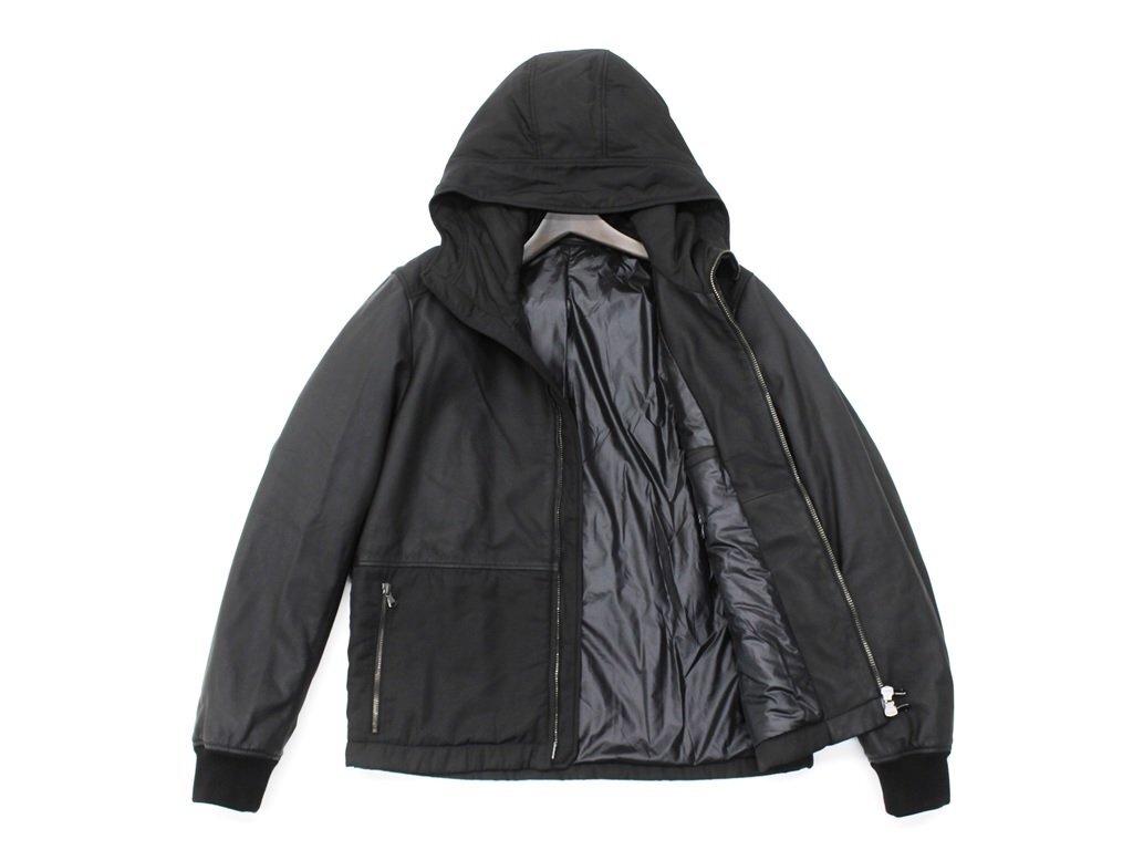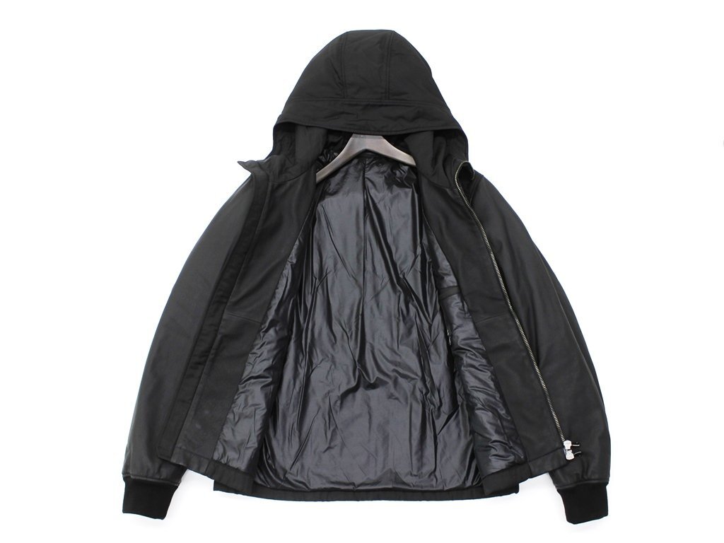 38万新品◆L◆BARNEYS NEWYORK バーニーズ ニューヨーク ラムレザージップアップパーカージャケットブルゾン 黒