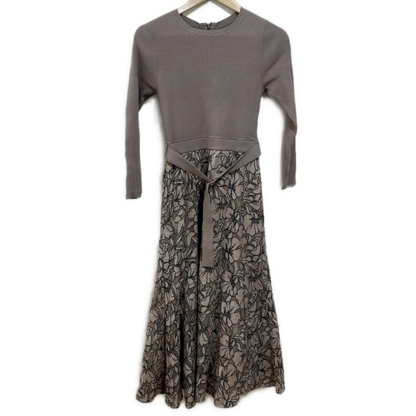ジャスグリッティー JUSGLITTY サイズ1 S - ブラウン×ダークブラウン レディース クルーネック/長袖/マキシ丈/レース ワンピース