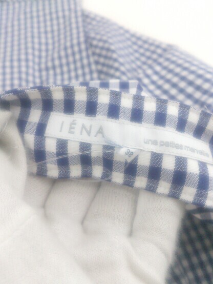 ◇ IENA イエナ チェック ストレッチ パンツ サイズ38 ブルー ホワイト系 レディース E