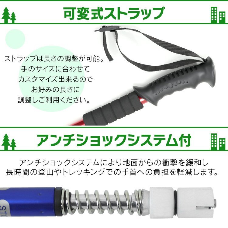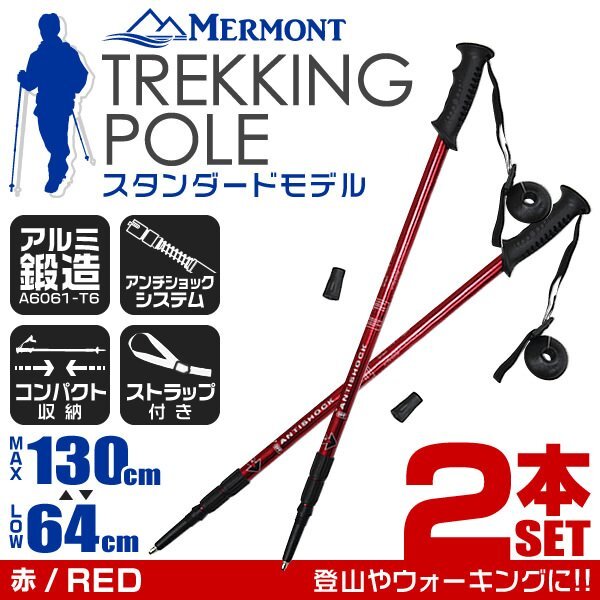 | 2本セット トレッキングポール ステッキ 杖 アルミ製 アンチショック機能付 ステッキ スティック トレッキング ウォーキング 登山 赤 |