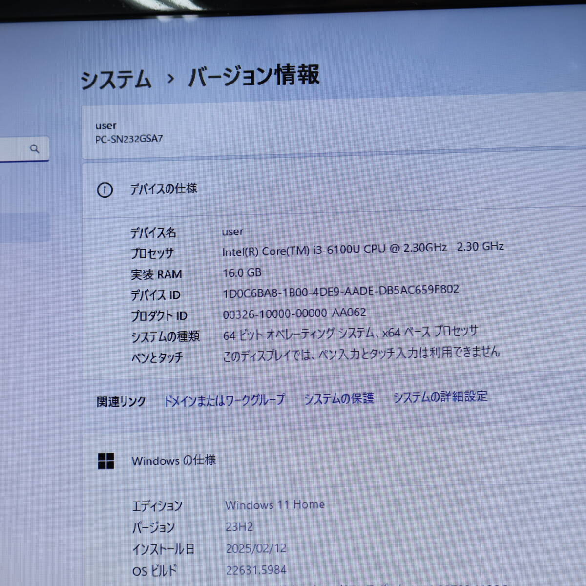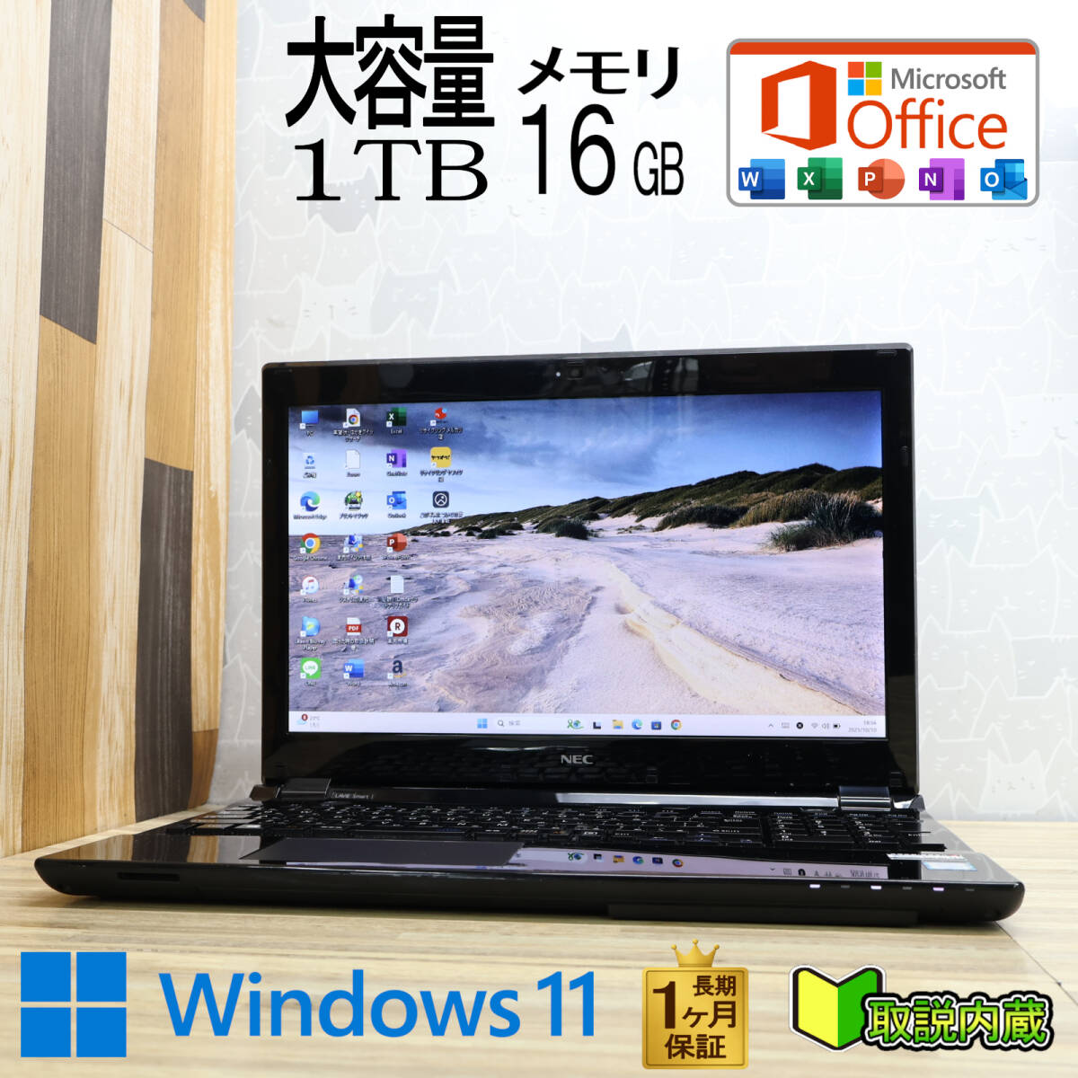 ★超美品 高性能6世代i3!大容量1TB メモリ16GB★SN232G Core i3-6100U Webカメラ Win11 MS Office2019 H&B ノートパソコン★P94091