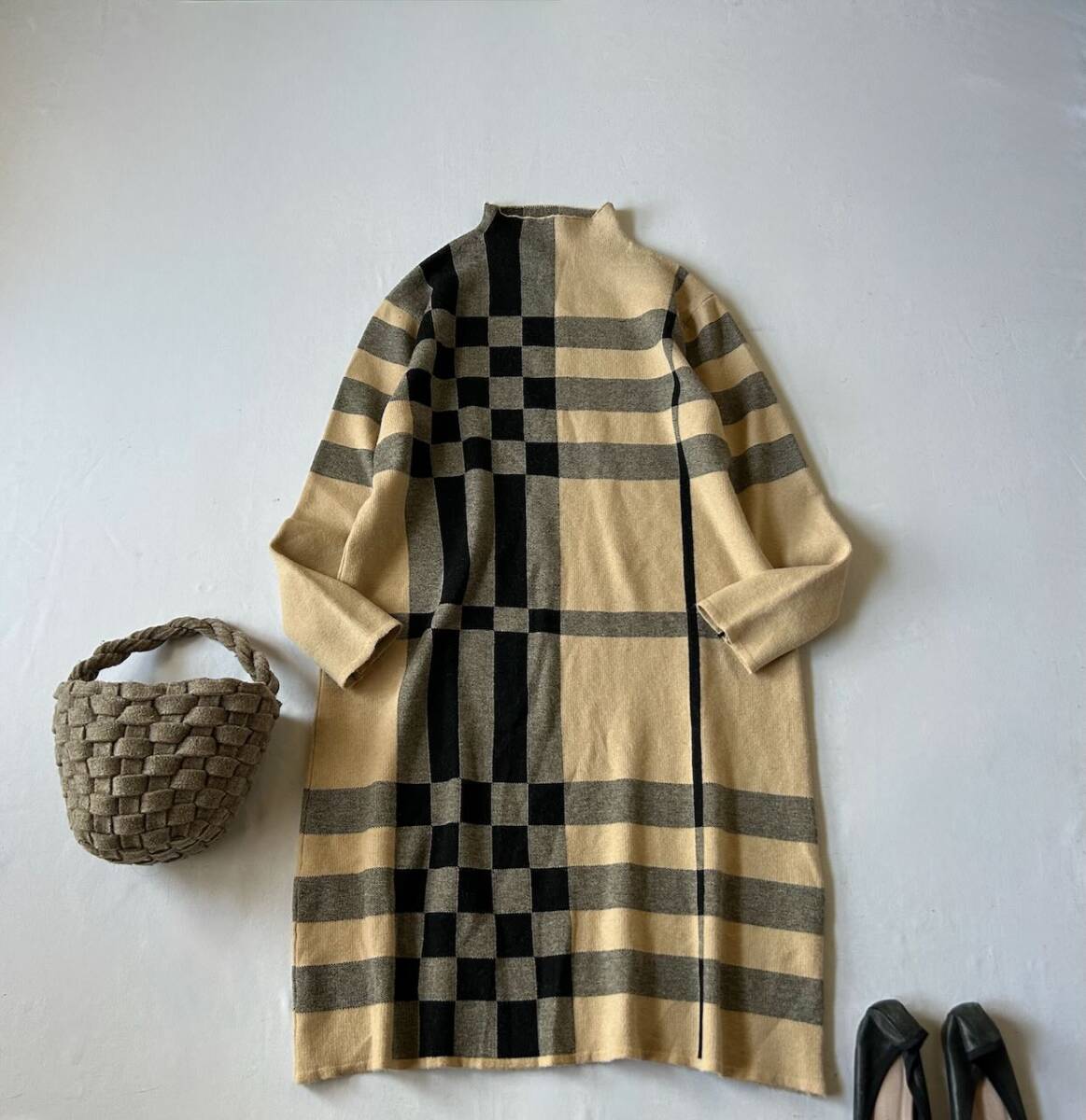 Capricious by plegina カプリシア バイ プレジーナの、チェックのようになった可愛いニットワンピースです。 色 ベージュ系×ブラック サイズ表示 F 実寸 着丈95cm 胸囲52cm 肩幅42cm 袖丈54cm くらい (平置きにて計測しております。) 素材 アクリル100% *画像でコーディネートした他アイテムは付属致しません。 中古品とお考え下さい。 特に目立つ汚れやキズはありませんが、素材の性質上、多少の毛羽立ちがあります。 また、写真画像はモニター環境や撮影状況などに応じて、実際の商品とお色と少し異なる場合があります。よろしくお願いいたします。 ダメージの見落としがある場合はご容赦ください。 他、気になる点はご質問下さい。 なお、落札後のキャンセルはできません。 発送後はノーリターン、ノークレームでお願いします。 オークション終了後、2日以内にご連絡が取れる方のみご入札下さい。 万が一連絡が遅くなってしまう場合は、オークション終了前に、必ず質問欄より お問い合わせ下さい。 | ||||||||