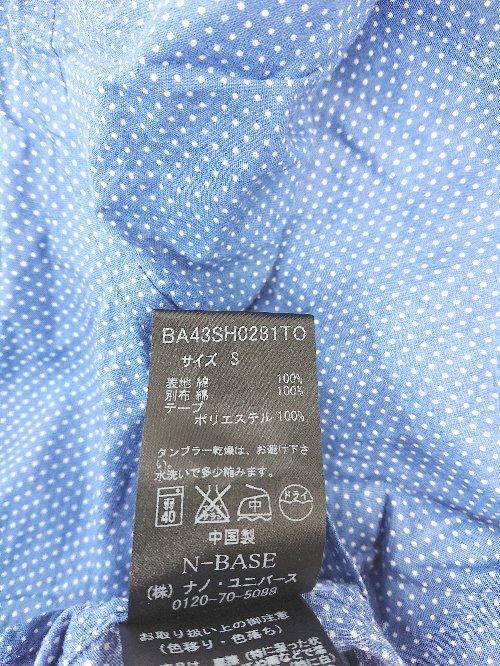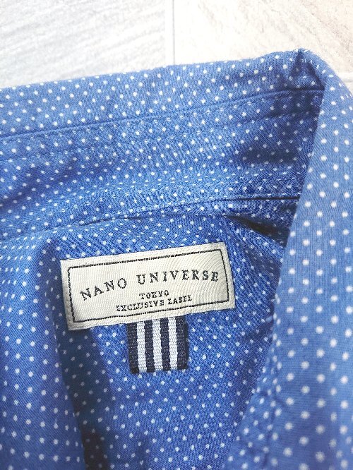 ◇ Θ nano universe ナノ ユニバース ピンドット 長袖 シャツ サイズS ブルー メンズ E