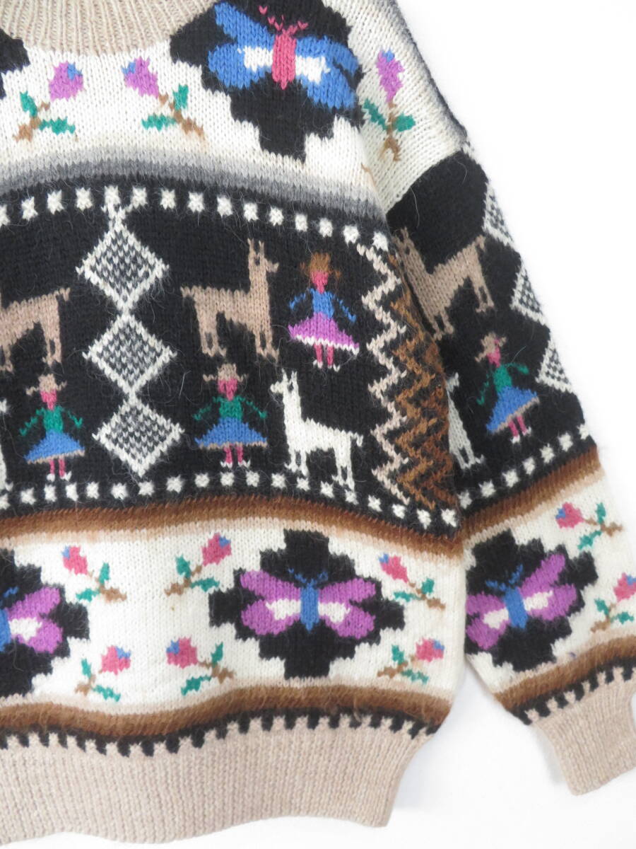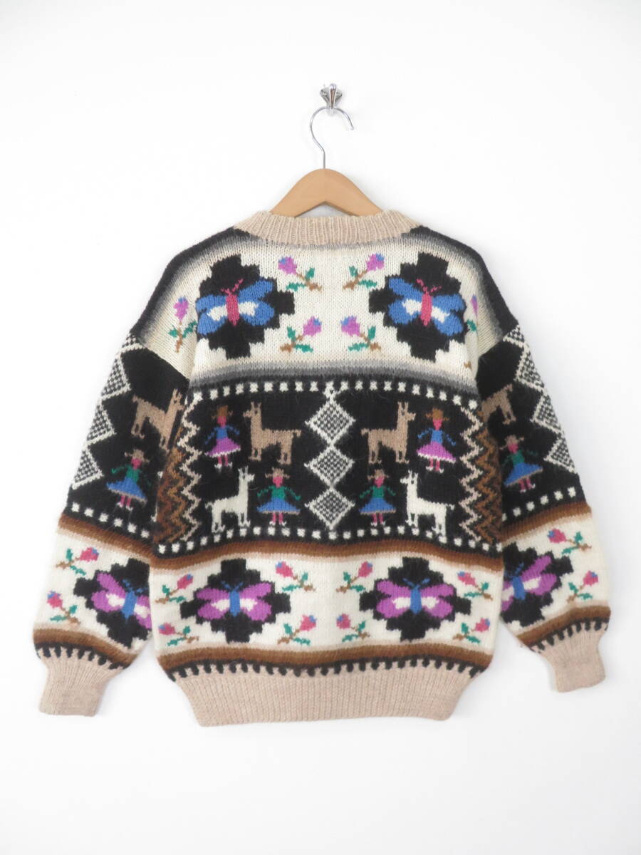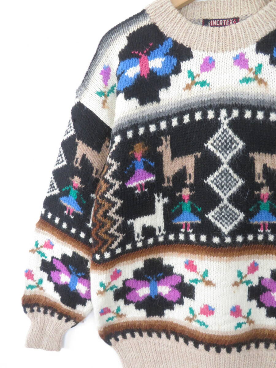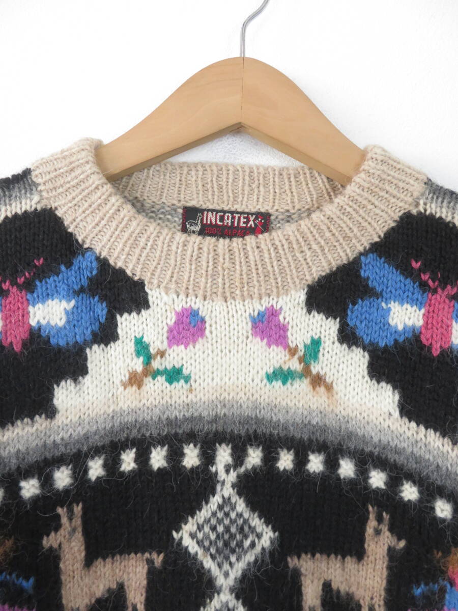 【美品】アルパカ100% 手編み ペルー製 ニット ベスト インカテックス カーディガン 幾何学模様 総柄 ハンド ニット メンズ レディース