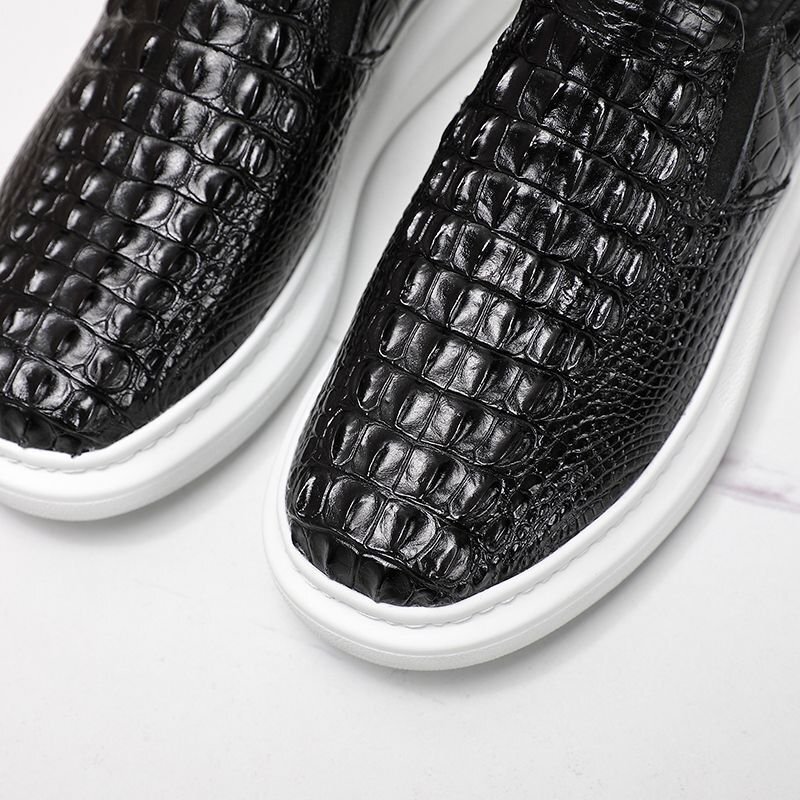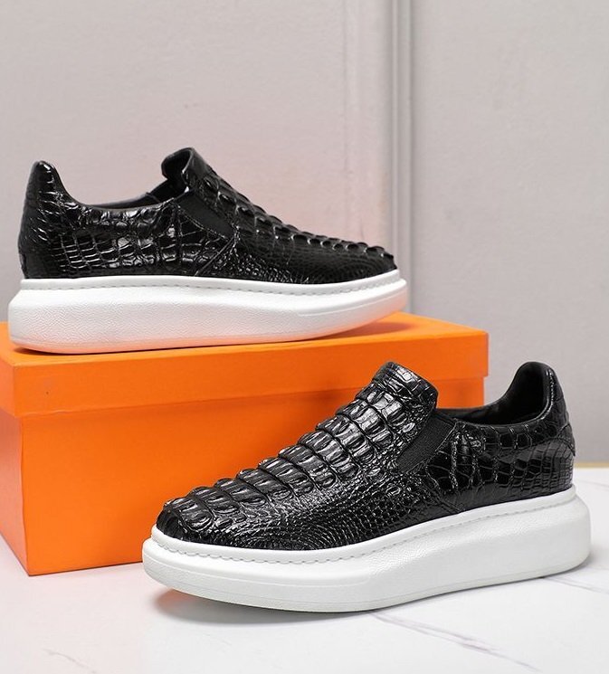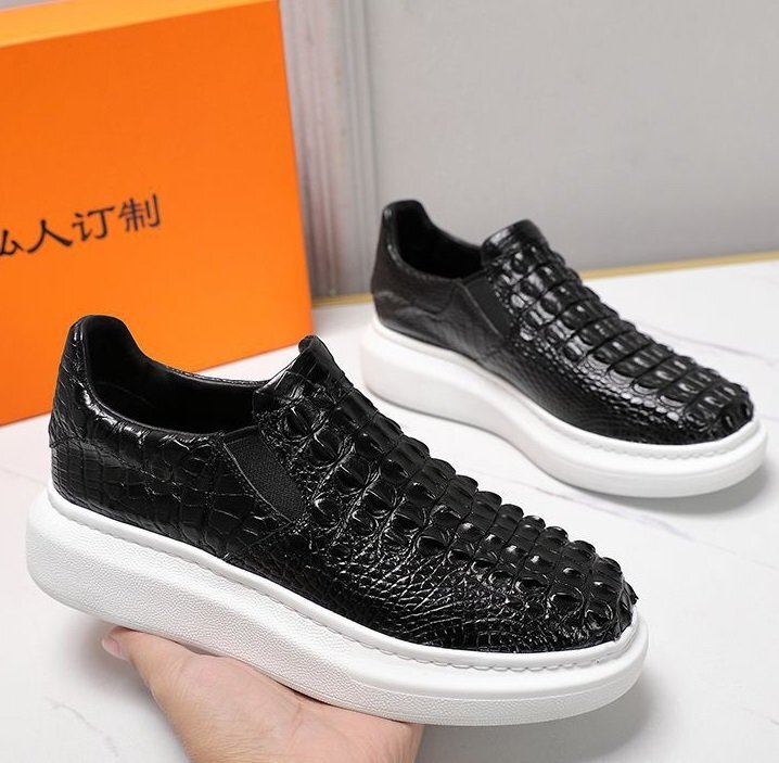 クロコダイルレザー スニーカー 最高級 ワニ革 クロコダイル 靴 メンズシューズ 革靴 ブラック 25.0cm 【n791】
