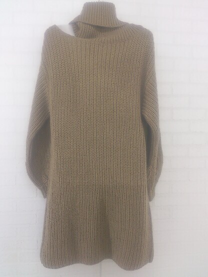 ◇ EMODA エモダ タートルネック スリット 長袖 ミニ ニットワンピース サイズF ベージュ系 レディース E