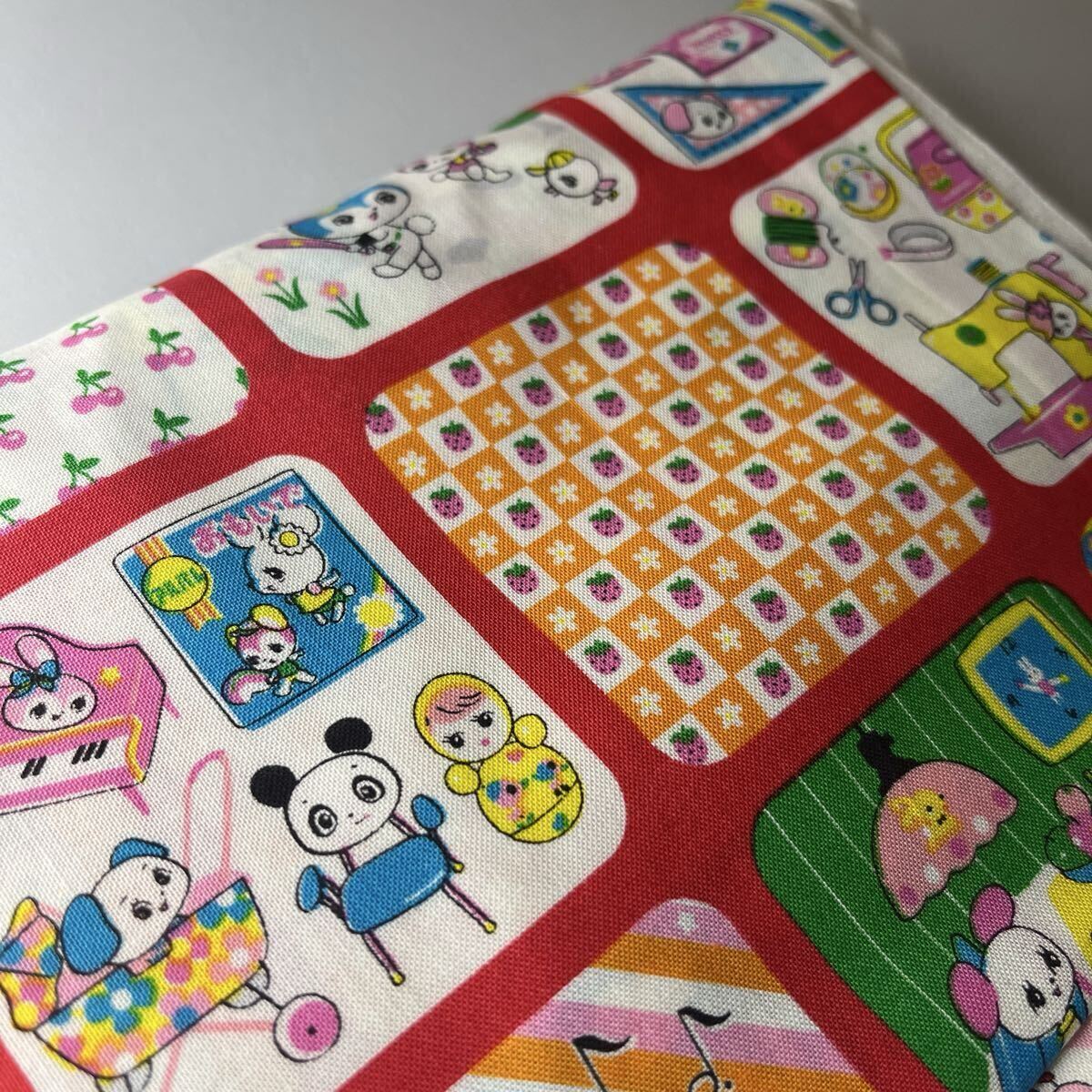 商品名 : 【送料無料】50cm 生地 日本製 シーチング ララチューン LaLaTune レッド ハギレ レトロアニマル