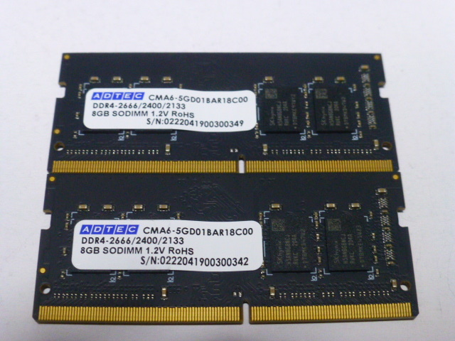 メモリ ノートパソコン用 ADTEC SK hynixチップ DDR4-2666/2400/2133 8GBx2枚 合計16GB 起動確認済みです⑤