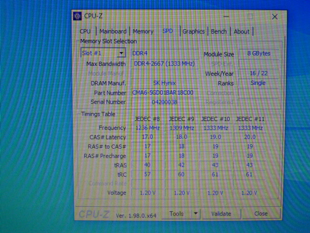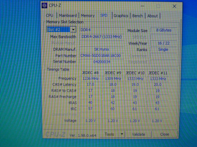 メモリ ノートパソコン用 ADTEC SK hynixチップ  DDR4-2666/2400/2133 8GBx2枚 合計16GB 起動確認済みです⑤