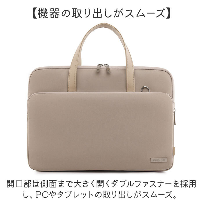 | 商品説明 | ・・【ノートPCもタブレットもOK!】 ・薄型PCやタブレットをすっぽり収納!シンプル&スリムな「パソコンショルダーバッグ」が登場。 ・【機器の取り出しがスムーズ】 ・開口部は側面まで大きく開くダブルファスナーを採用し、PCやタブレットの取り出しがスムーズ。 ・【肉厚クッションが衝撃吸収】 ・内側には肉厚なウレタンクッションを内蔵。持ち運び中の衝撃からモバイル機器を保護。 ・【ベルベットライクな肌触り】 ・繊細なPC本体やタブレットの液晶画面を傷つけない!ケース内側は指触り滑らかな起毛素材。 ・【便利なポケット】 ・イヤホンや電源ケーブルなど周辺機器をまとめて収納できるファスナーポケット付き。 ・【持ち方選べる3AYタイプ】 ・手持ち、キャリーバッグに取付できるキャリーオン、付属のショルダーベルトで肩掛けスタイルも ・【デバイスに合わせてチョイス】 ・お手持ちのデバイスに合わせてサイズが選べる「13.3-14inch」「15inch」の2サイズ。 ・(※2)お手持ちの機器のサイズをよくご確認の上、ご購入ください。 ・【合わせやすいシンプルカラー】 ・配色がおしゃれなベーシック&大人かわいいくすみカラーを中心にラインナップ。 ・【ポケット仕様】 ・前面:ファスナーポケット×1(内側:オープンポケット×2、ペンホルダー×2) ・背面:ファスナーポケット×1 |