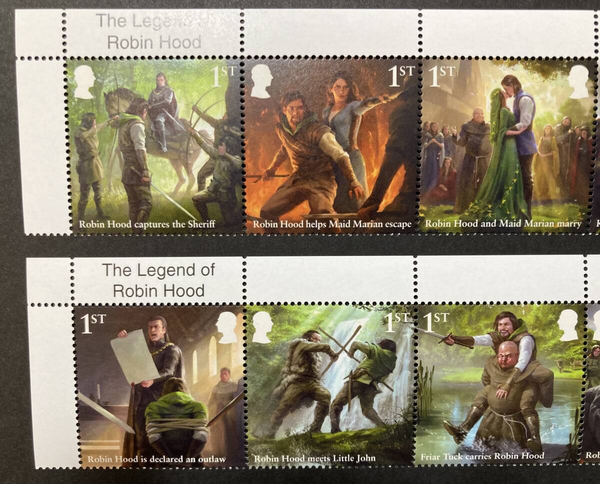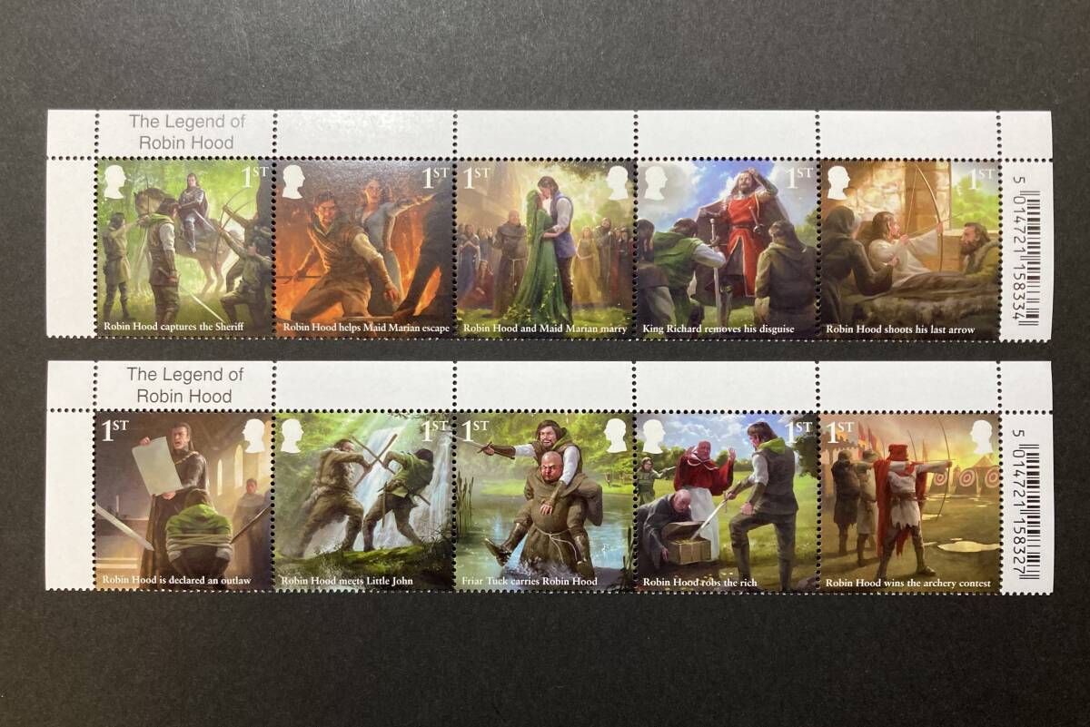外国切手(未使用)イギリス 2023年発行 ロビンフッドの伝説 単片10種完(5種ストリップ×2) - 物語 文学 中世