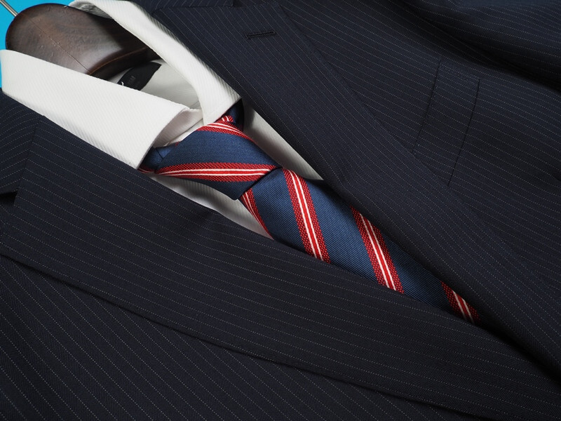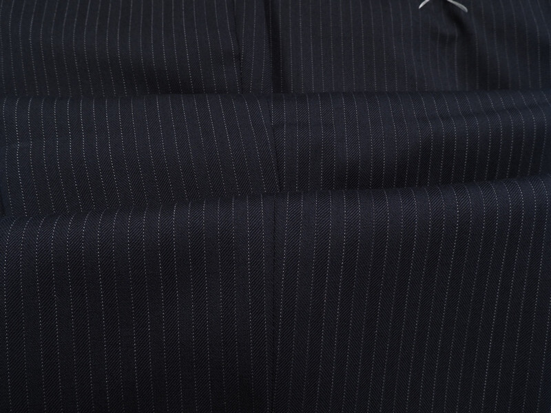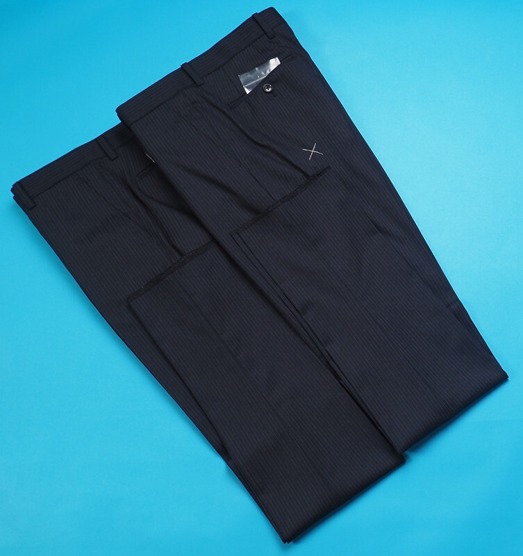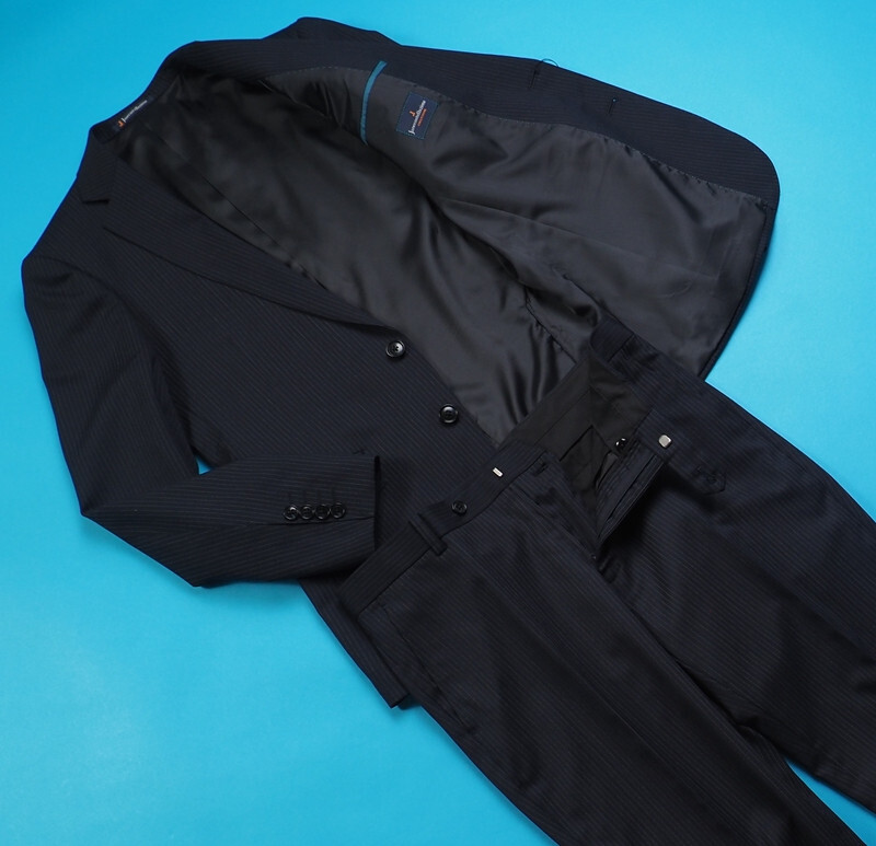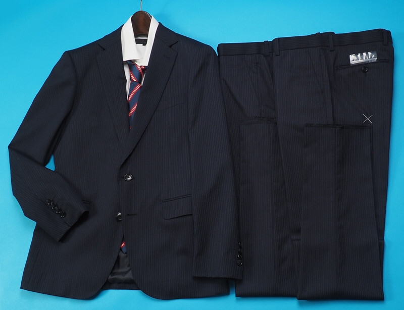 新品 大手百貨店扱い 秋冬総裏 ウール混ギャバジン ストライプ ツーパンツ スーツA5紺(B) 1145872