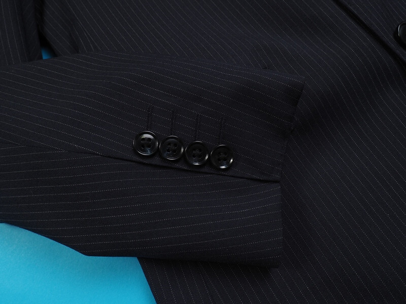 AMFステッチ、ラペル毛芯、裏地のカラーステッチ、パイピング切り替えなど、百貨店向けならではの上級仕立てで仕上げられております。