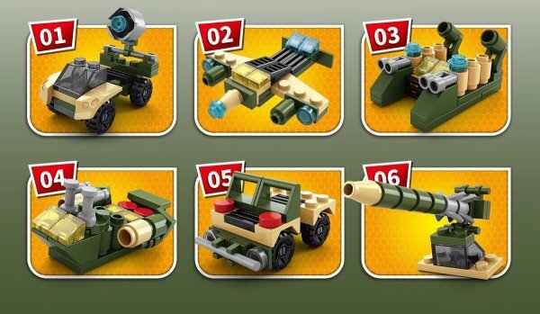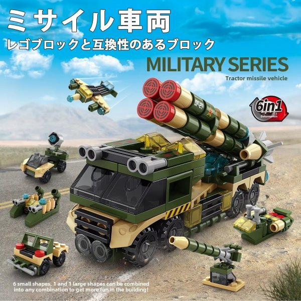 航空母艦、恐竜、工事トラック、特殊警察ヘリ、キャノン戦車、車両迫撃砲、ミサイル車両、装甲軍用車両、航空車両、お城、SWAT(スワット)、蒸気機関車、イルカ、メカ、救急ヘリ、オスプレイヘリなど、様々なシリーズ展開をしております。