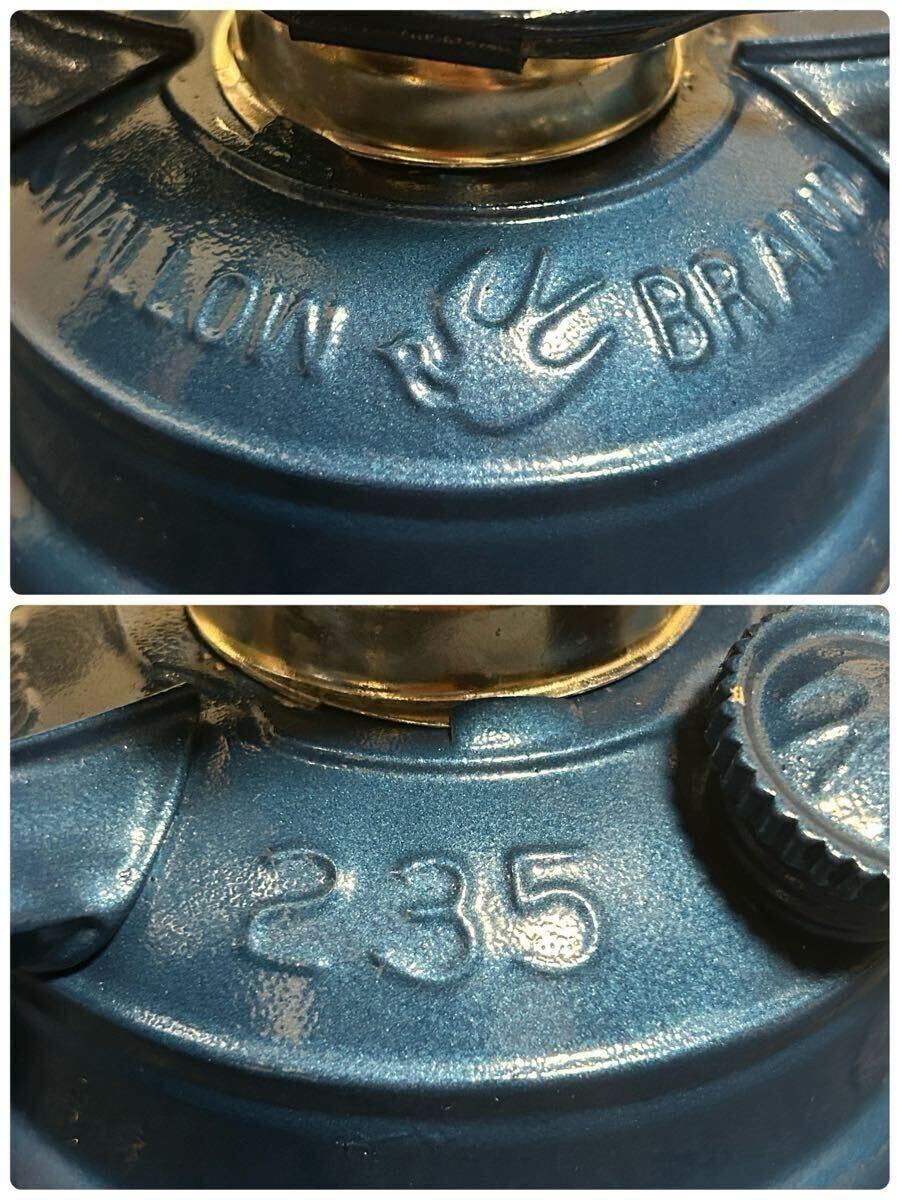 ご覧頂き誠に有難う御座います。スワローブランドのオイルランタンの出品になります。閉鎖した釣具屋さんの保管品です。高さは約25cm、幅が約15cm、底のタンク径が約11cmです。