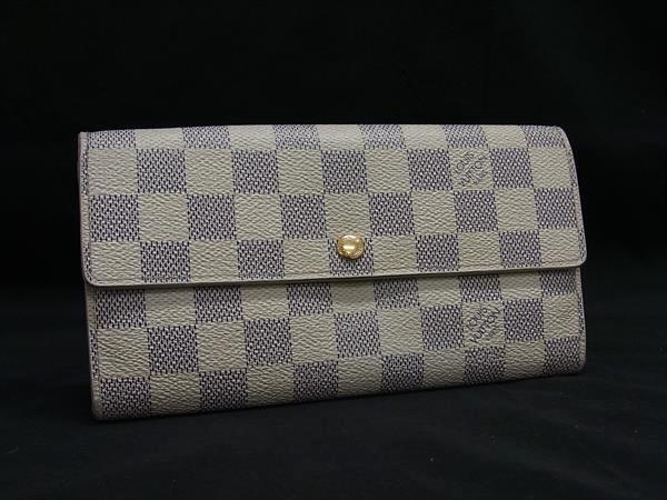 1円 LOUIS VUITTON ルイヴィトン N61735 ダミエアズール ポルトフォイユ サラ 二つ折り 長財布 ウォレット アイボリー系 FT2963