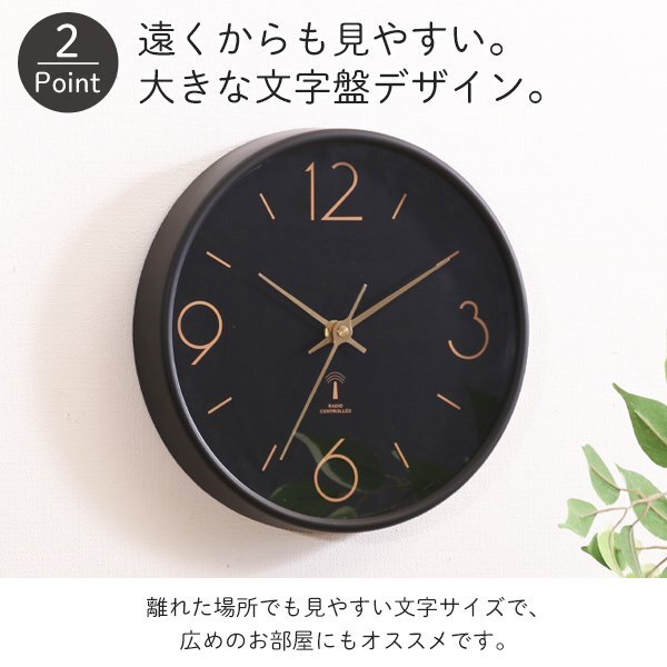 時計 電波 壁掛け 時計 おしゃれ シンプル 静音 アナログ 軽量 北欧 引越し 景品 インテリア 新生活 送料無料- 60N◇ 電波掛時計F:ブラック