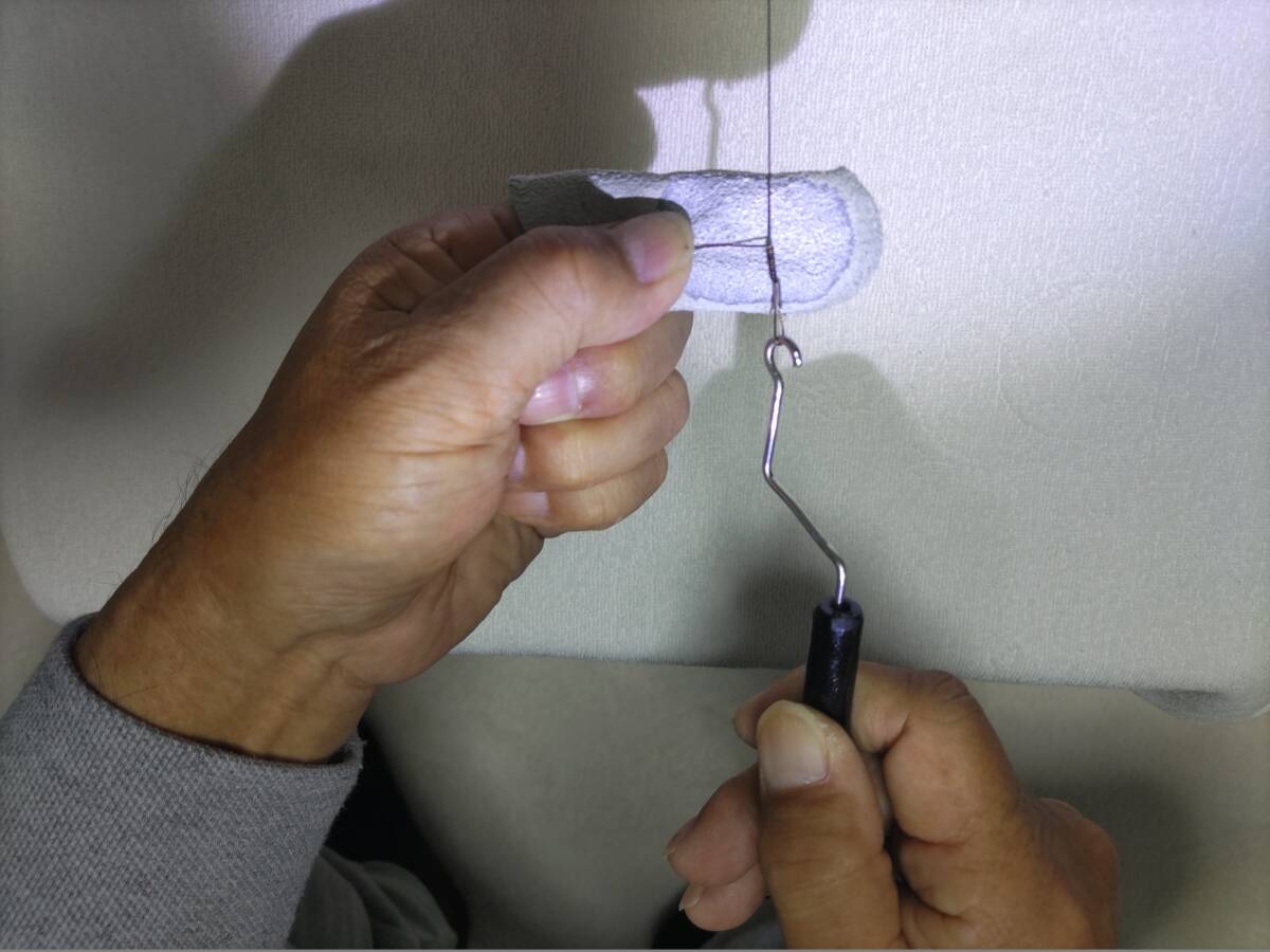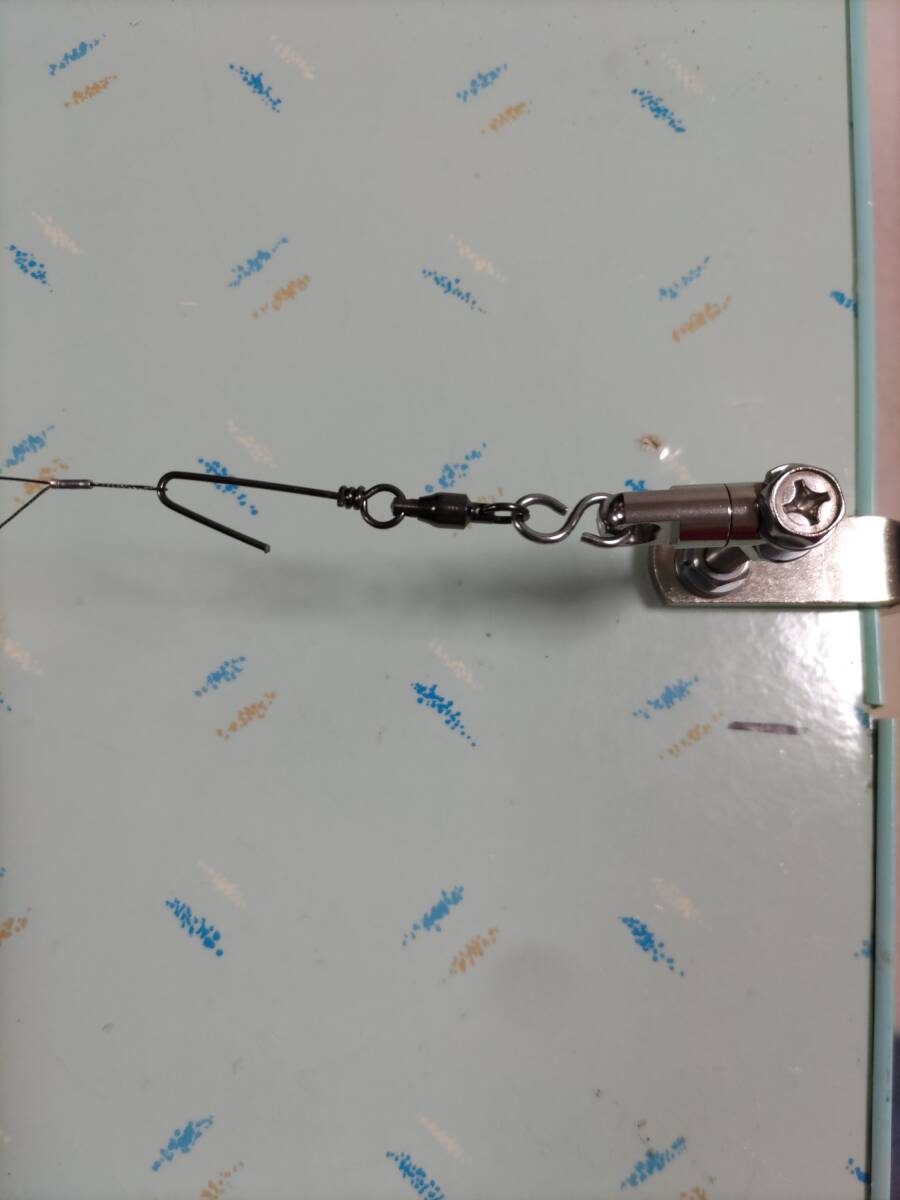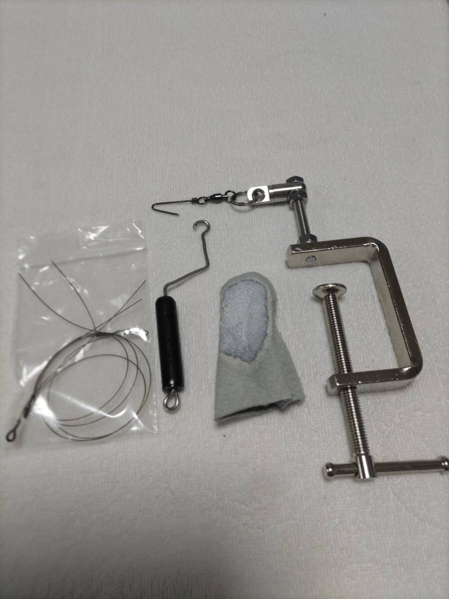 釣り用の ハリスの ワイヤー巻きつけを簡単に出来る工具です。 石鯛 底物 瀬ずれワイヤー作成等が簡単に素早く巻きつけられます。クランプのフックにワイヤーの端を引っ掛けて もう一方の端をハンドルに引っ掛けて手元でハンドルをくりくりと回しワイヤーを巻きつけていきます。ワイヤーの引っ掛ける穴は2mm程度必要です。  針側の方は直接針にハンドルを引っ掛けてハンドルをまわします。 ワイヤー巻きつける際は出来るだけ詰めて巻いて頂いて45回位巻きつけるといいと思います。