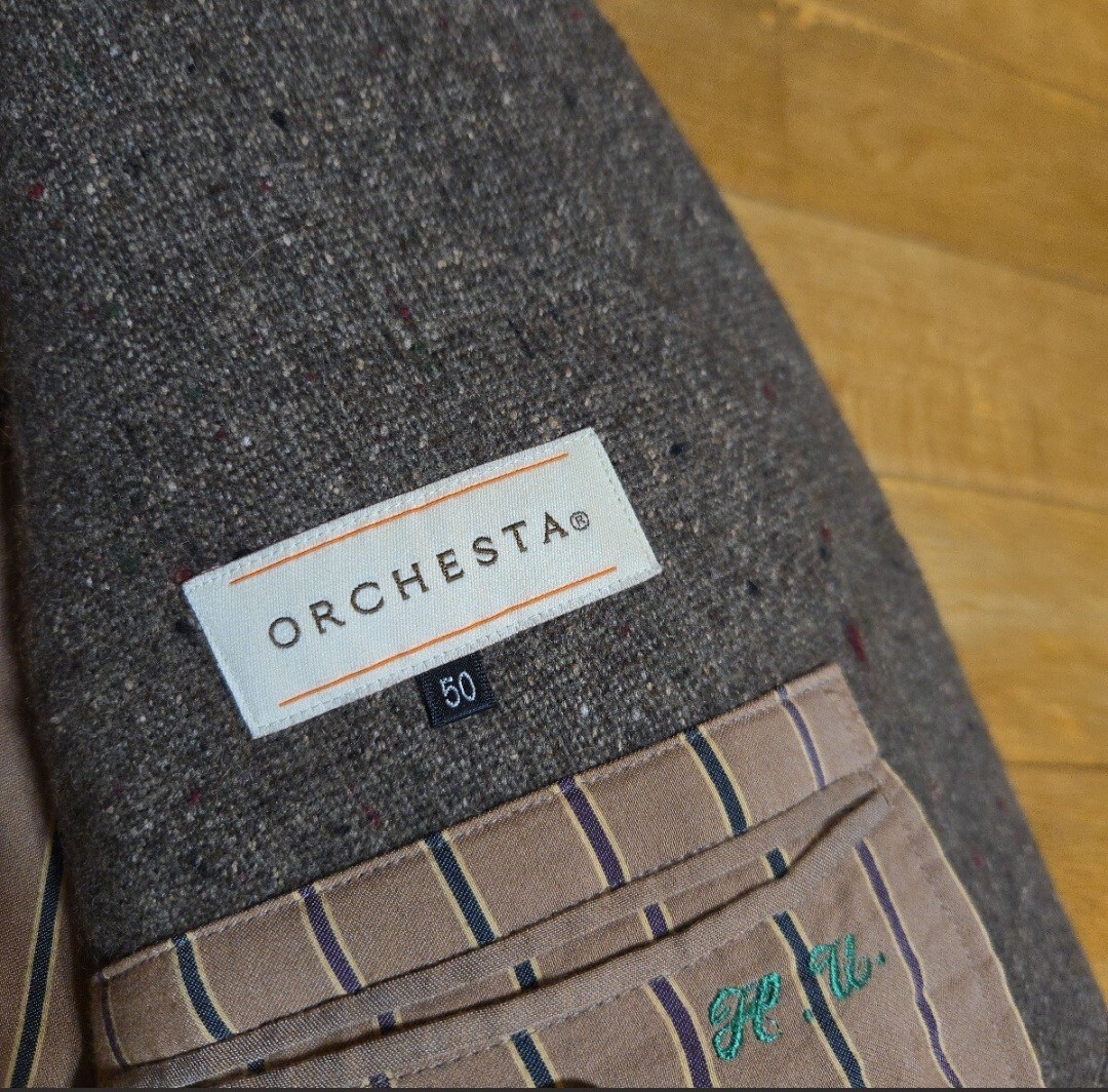 ☆【ORCHESTA/オーケスタ】伊産 秋冬高級◎『上質メランジネップ織りツイードウール×シルク×カシミヤ』生地 大人の秋冬感◎グレージュ ジャケットです。お色は秋冬時期に重宝する上品なメランジグレージュ。sizeは50(XL-XXL位)です。