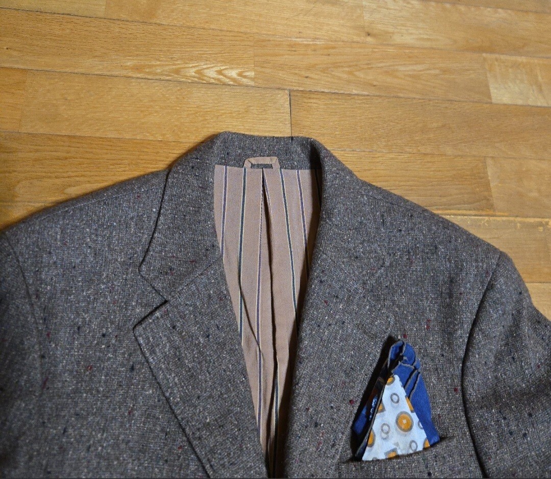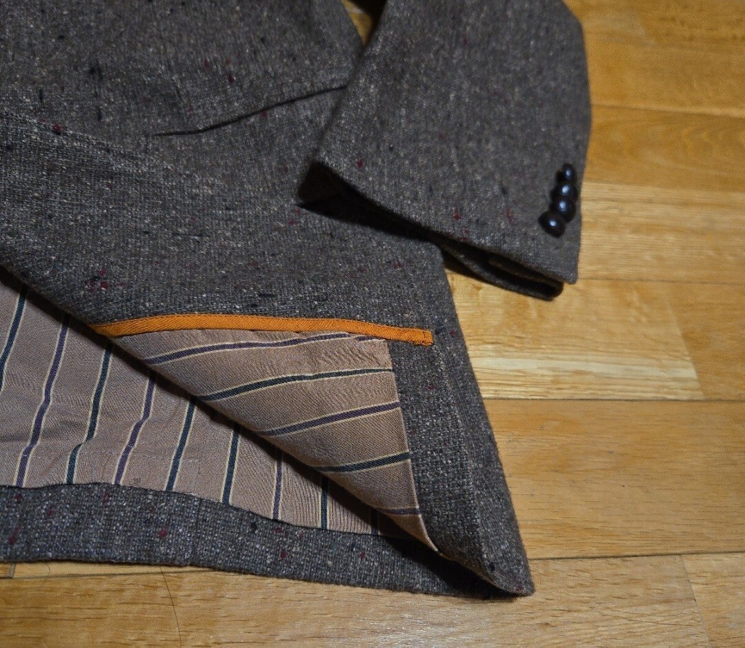 こちらは特注品【ORCHESTA/オーケスタ】のこれからの秋冬に重宝します秋冬定番のマスト生地。イタリア産のメランジネップ織りフラノツイードウール素材。英国調秋冬トレンドの柔らかな起毛感あるソフトタッチ、絶妙な秋冬素材『上質メランジネップ織りフラノツイードウール×シルク×カシミヤ』生地を使用したシックな色気ある合わせやすい英国調グレージュ ジャケットをご紹介致します。