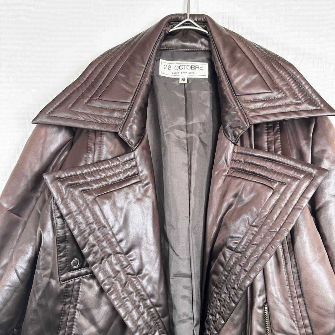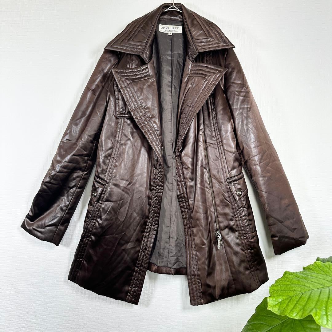 22オクトーブル 中綿コート 軽量 光沢 大人カジュアル ダークブラウン M EA5533