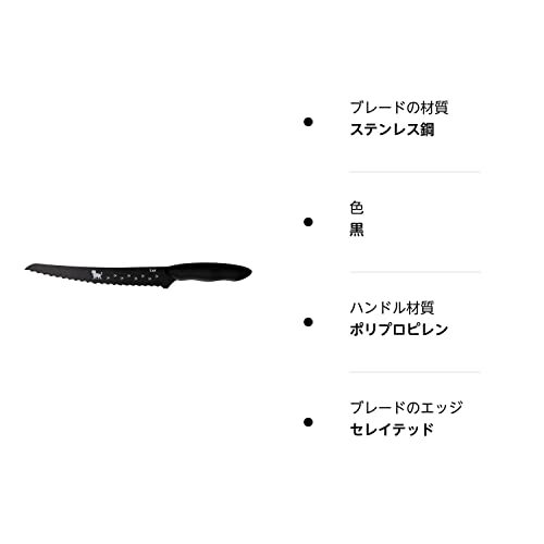 柔かいパンやケーキもきれいにカットできる波刃のパン切りナイフ。 ねこ足のイラストが1cm刻みにデザインされているので、切る時の目安にもなり便利です。