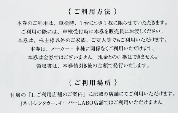 VTホールディングスの株主優待、車検時10,000円割引券1枚です。(有効期限2026年12月末日)