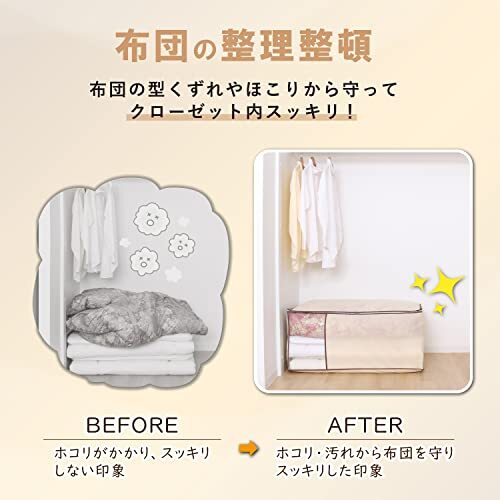 ・【通気性の良い不織布製の布団収納袋】:通気性の良い不織布で来客用などの布団一式をホコリから守り保管。