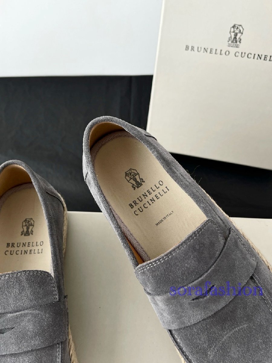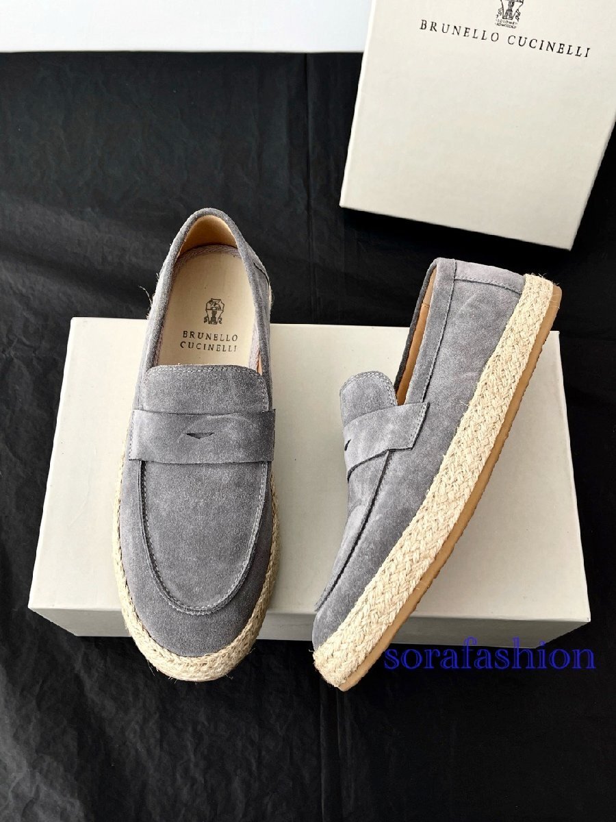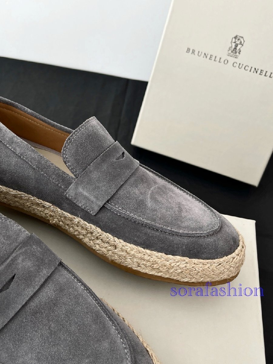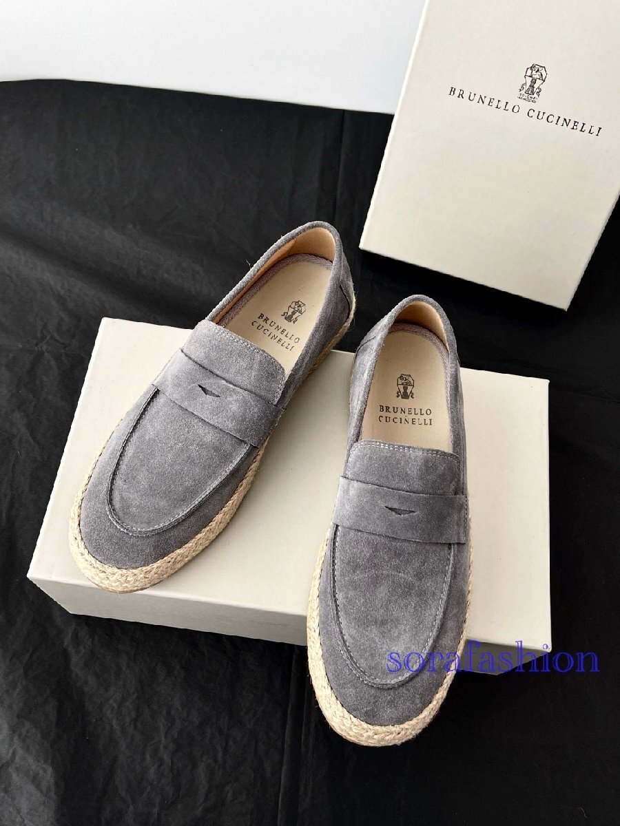 BRUNELLO CUCINELLI ブルネロ クチネリ メンズローファー スリッポン スニーカー EU43 グレー ドライビングシューズ 本革 スエード 紳士靴