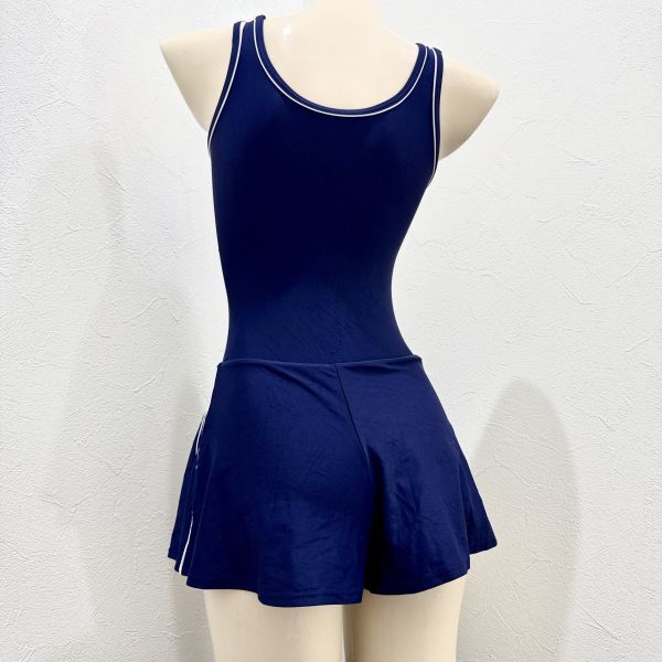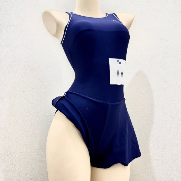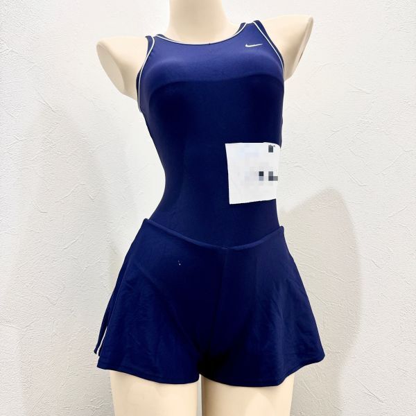 8【リサイクル品】ナイキNIKE女子競泳水着(Lサイズ)★キュロット股上ハイレグ微光沢ネイビー濃紺ホワイト白ライン★大きいサイズ男性も