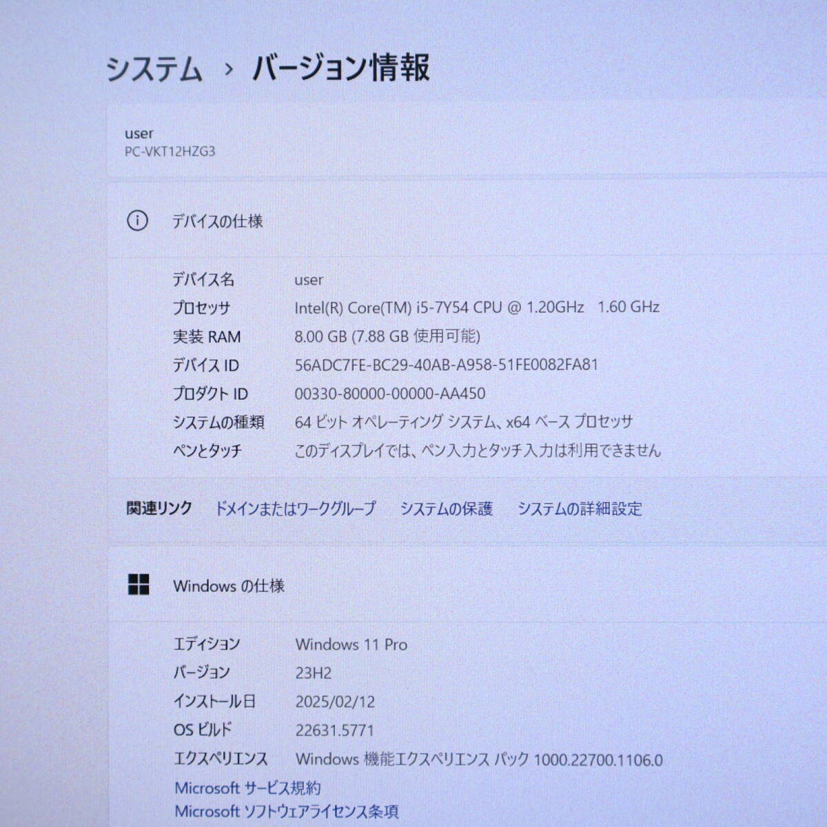 ★美品 高性能7世代i5!SSD256GB メモリ8GB★VKT12H Core i5-7Y54 Webカメラ Win11 MS Office2019 Home&Business ノートパソコン★P92952