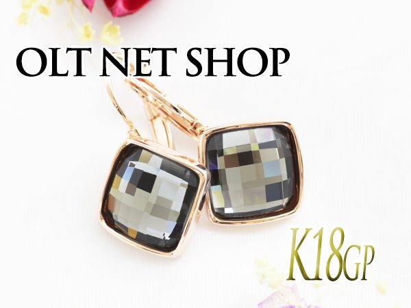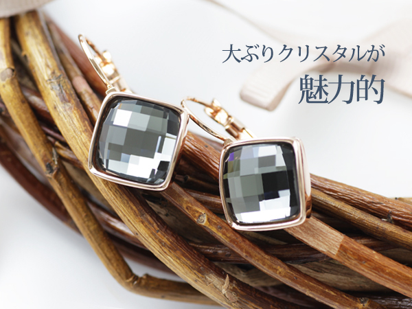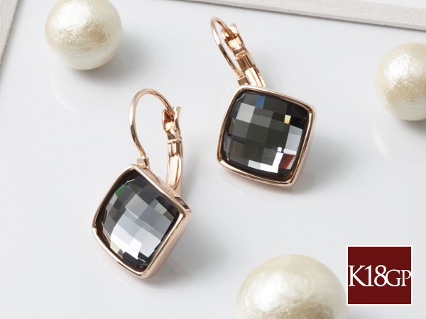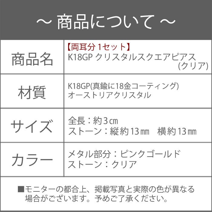ピアス レディース クリアカラー クリスタル ピンクゴールド 18金 18kコーティング 四角 スクエア / K18GP クリアクリスタルスクエアピアス
