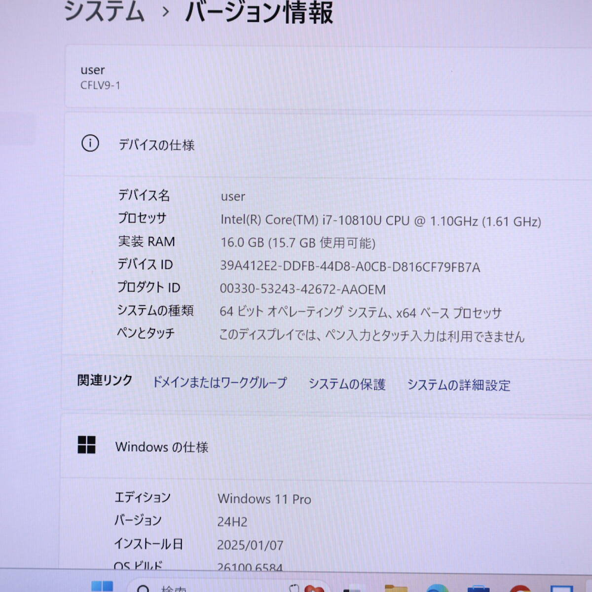 ★完動品 最上級10世代i7!M.2 NVMeSSD512GB メモリ16GB★CF-LV9 Core i7-10810U Webカメラ TypeC LTE Win11 MS Office2019 H&B★P93522