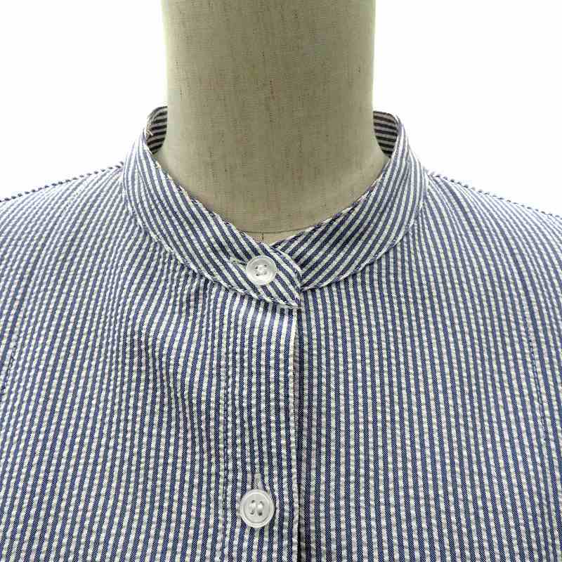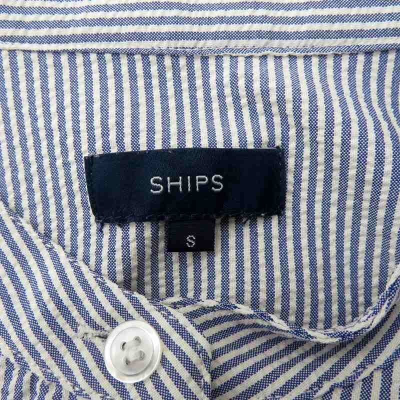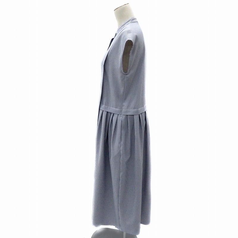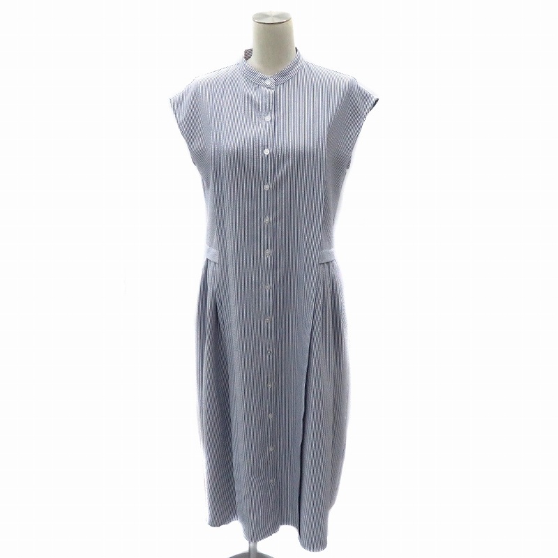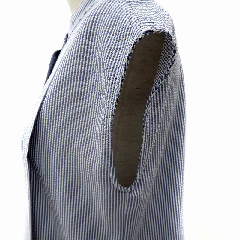 シップス SHIPS シャツワンピース フレンチスリーブ ロング丈 ストライプ柄 S 青 ブルー /NM1 レディース