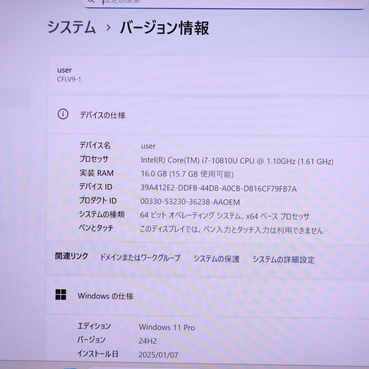 ★美品 最上級10世代i7!M.2 NVMeSSD512GB メモリ16GB★CF-LV9 Core i7-10810U Webカメラ TypeC LTE Win11 MS Office2019 H&B★P93466
