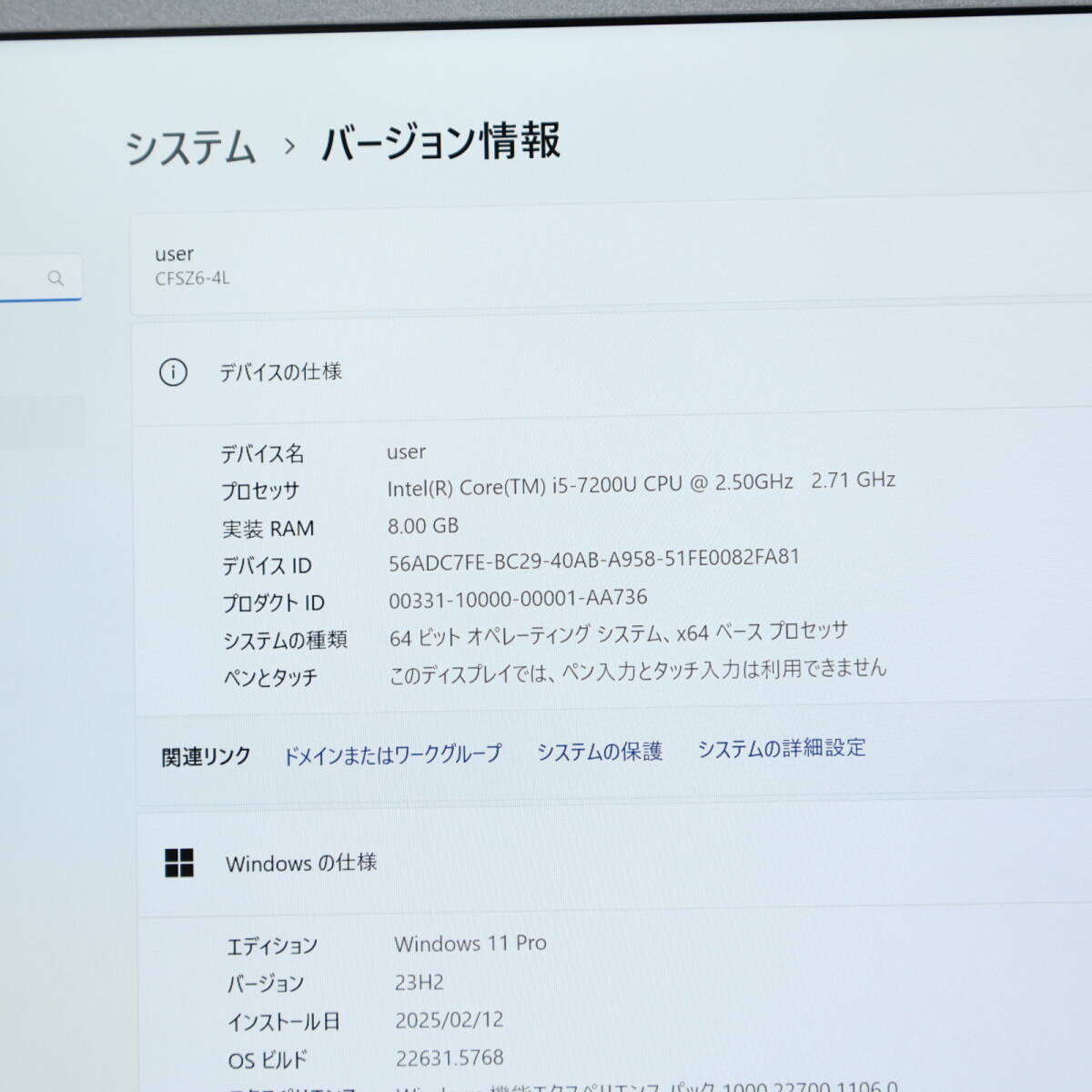 ★超美品 高性能7世代i5!SSD128GB メモリ8GB★CF-SZ6 Core i5-7200U Webカメラ Win11 MS Office2019 H&B ノートパソコン★P92098