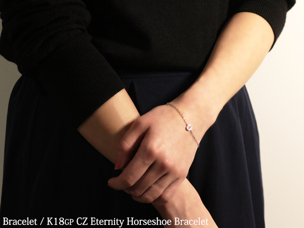 新品/ブレスレット/K18GP/馬蹄/シルバー/ダイヤ/18金/レディース/ホワイトゴールド/ホースシュー/幸せ/幸運/シンプル/上品/CZ/WG