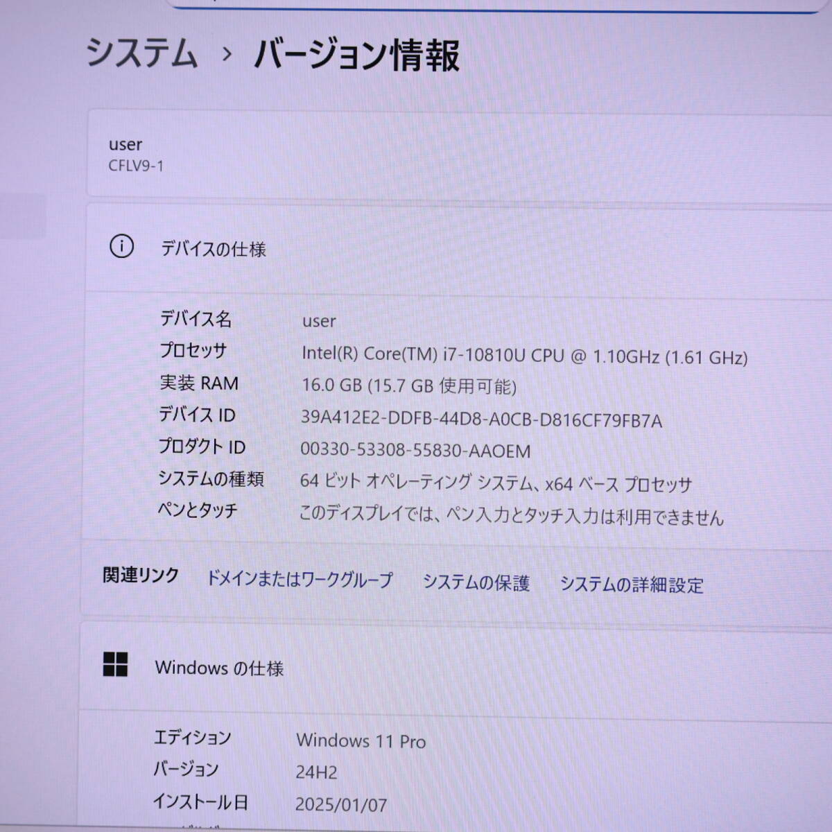 ★現状品 最上級10世代i7!M.2 NVMeSSD512GB メモリ16GB★CF-LV9 Core i7-10810U Webカメラ TypeC LTE Win11 MS Office2019 H&B★P93369