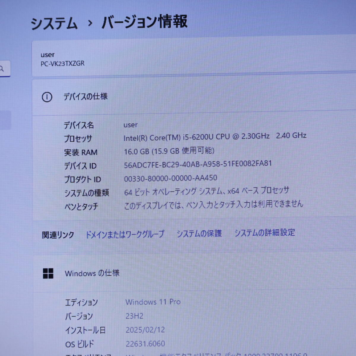 ★美品 高性能6世代i5!大容量500GB メモリ16GB★VK23T Core i5-6200U Win11 MS Office2019 Home&Business 中古品 ノートパソコン★P94104