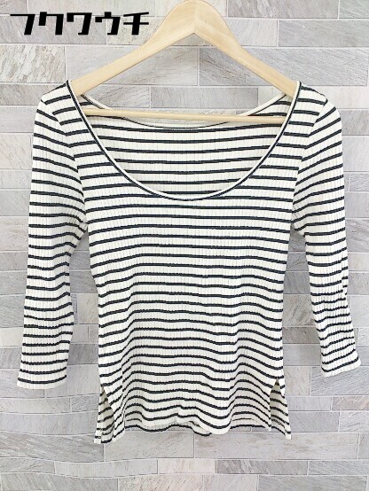 ◇ Demi-Luxe BEAMS デミルクス ビームス ボーダー リブ 七分袖 カットソー ホワイト ブラック レディース
