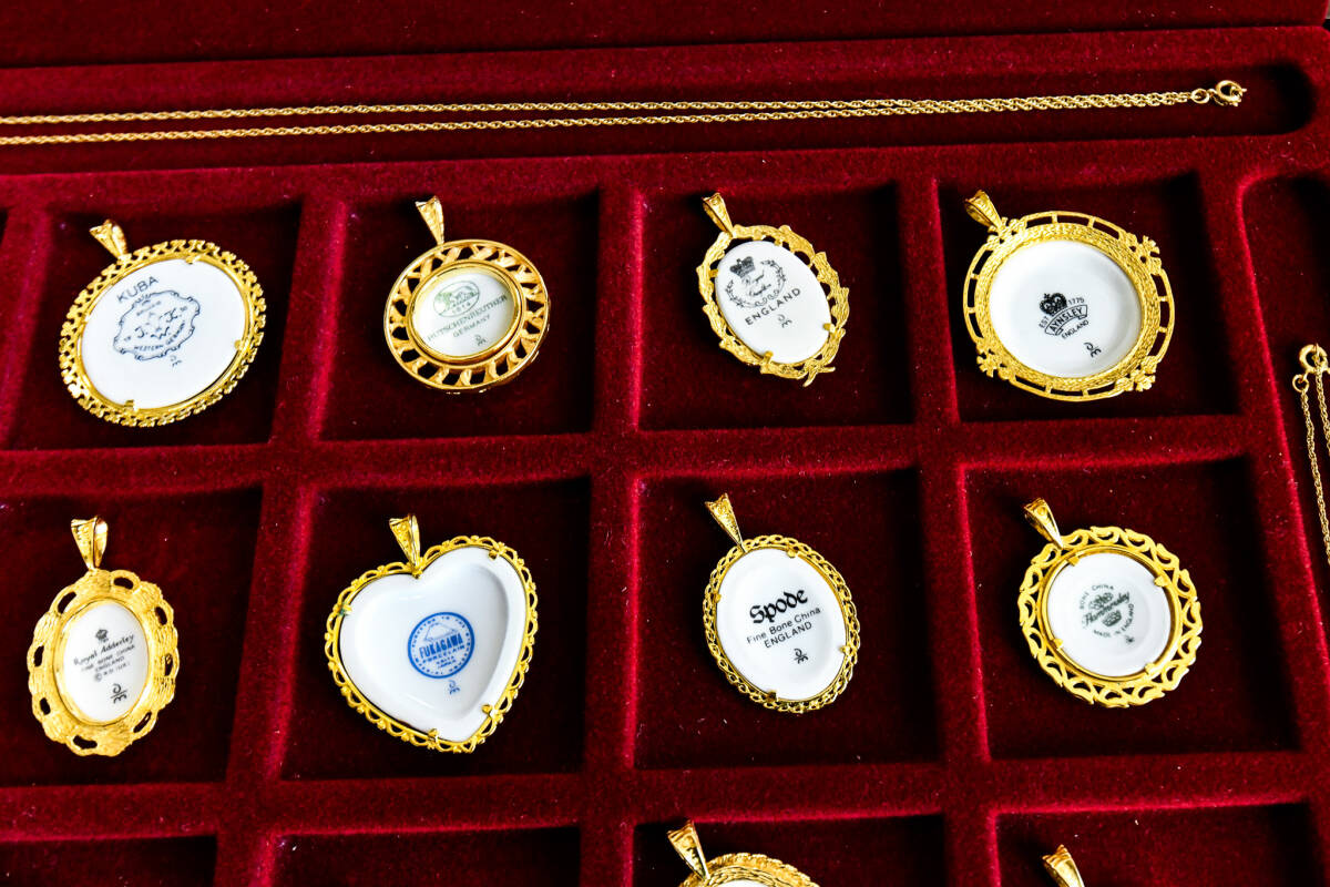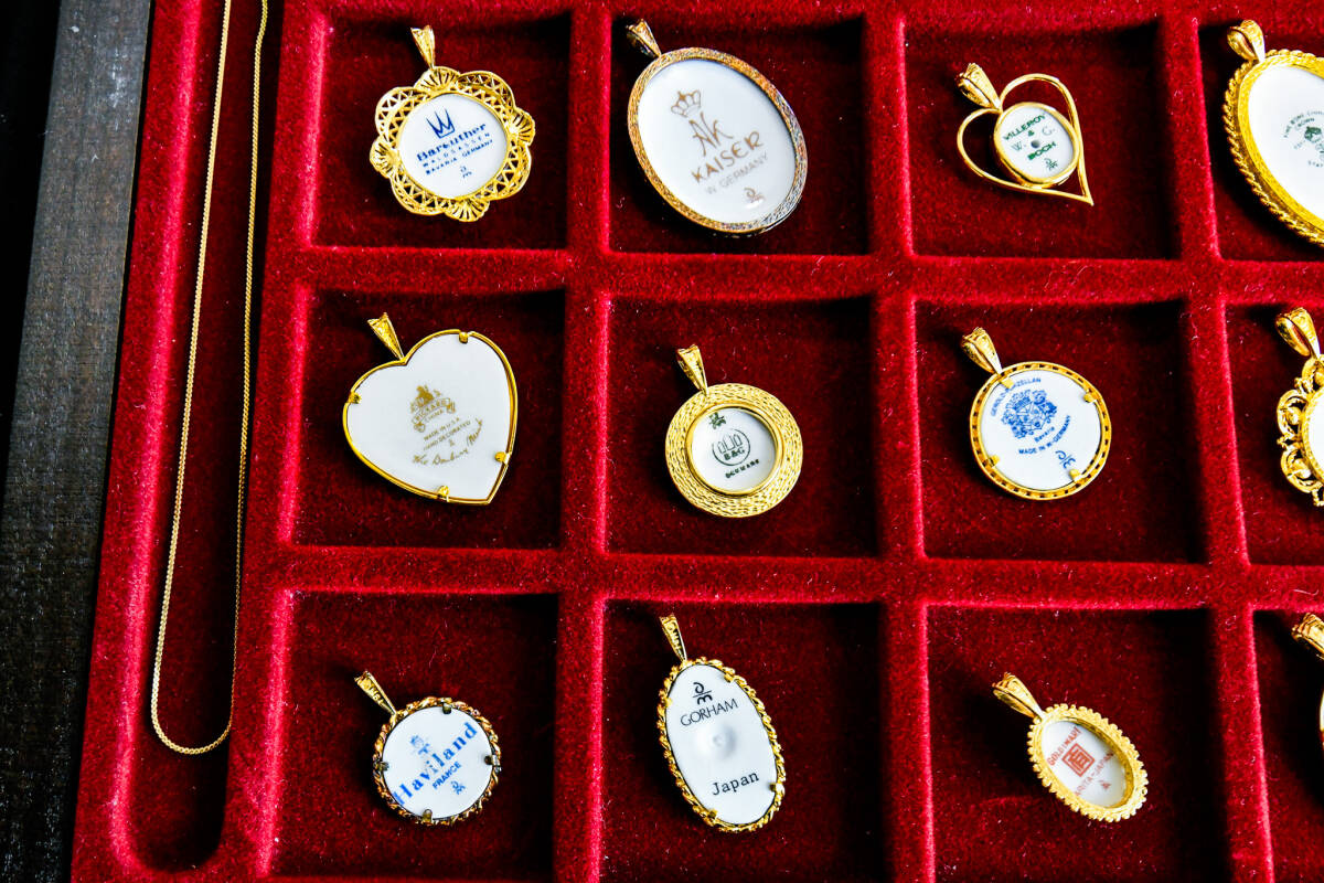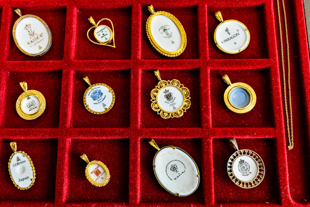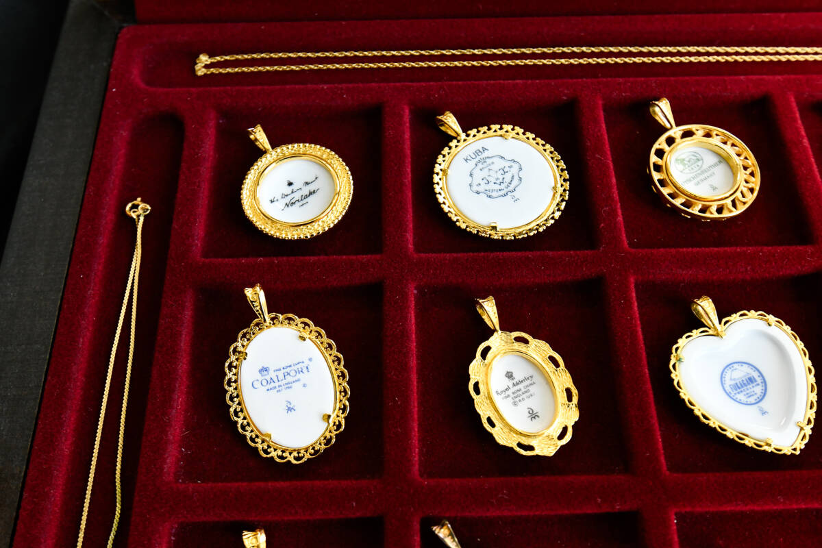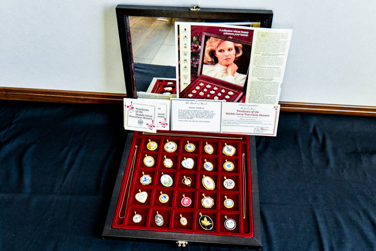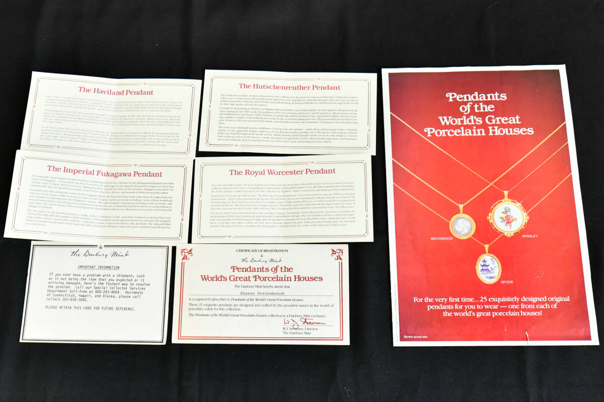 ご覧いただきありがとうございます、 正規登録書付『ダンバリーミント ペンダントトップ 25点 ネックレス 3点セット』の出品になります。 工芸品としての美しさと存在感がある『世界の名窯ペンダントコレクション』。 世界的に名高い陶磁器工房のデザインをモチーフにした大変貴重なお品になっております。 ヤフオクなどで同品の出品はありますが、ペンダント25点とネックレス3点が揃っており、『正規登録書』が付いたセットは極めて入手困難になります。 次回いつ出品できるか分からない、在庫限りのお品になりますのでお早めにご入札ください。 【寸法】 外箱 ●幅 38cm ●奥行 36cm ●高さ 6cm 【状態】 ●ペンダント ネックレス 箱内は傷や汚れはほぼ無く大変綺麗なお品になっております ●外箱については経年、使用感による傷、汚れが一部に見られます ●ペンダント専用ケースはございません ●ペンダントの説明カードは4枚のみです |