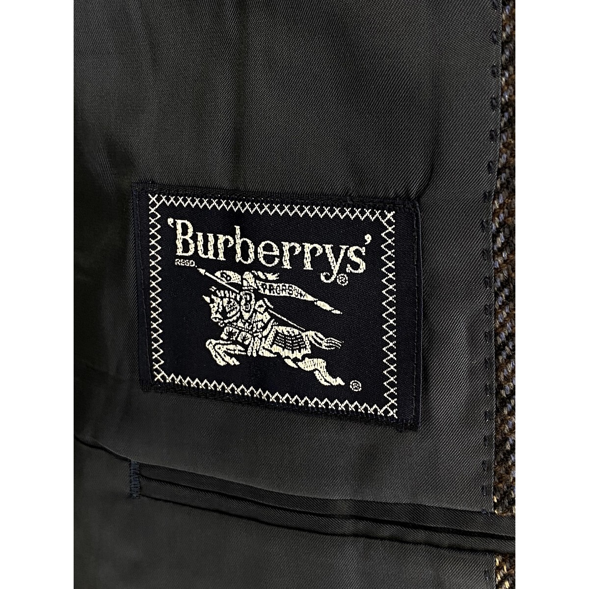 A6858/ビンテージ 80s 極美品 秋冬 総裏 BURBERRY バーバリー ウール ミンク ツイード テーラード シングル2BジャケットS程160 AB3/メンズ